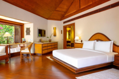 Die Hillside Casita von Amanpulo thront auf dem üppigen Inselhang und besticht durch ihren ruhigen Rückzugsort mit privater Terrasse, die die friedliche Umgebung einrahmt. Im Inneren schaffen hohe, gewölbte Decken eine luftige Atmosphäre, während Kingsize-Bett und großzügiges Badezimmer mit Marmordetails und freistehender Badewanne einen Hauch von Großzügigkeit und Eleganz verleihen – eine zurückhaltendere, aber dennoch luxuriöse Alternative zur Deluxe Hillside Casita.
