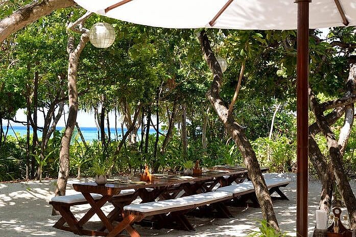 Die Picnic Grove liegt nur wenige Meter vom Strand entfernt, schattig unter Bäumen und serviert saisonal leichte Küche in entspannter Open-Air-Atmosphäre. Handgemachte Holzofenpizzen, frische Salate aus dem Inselgarten und hausgemachte Desserts sorgen für Genuss bei Groß und Klein.