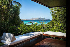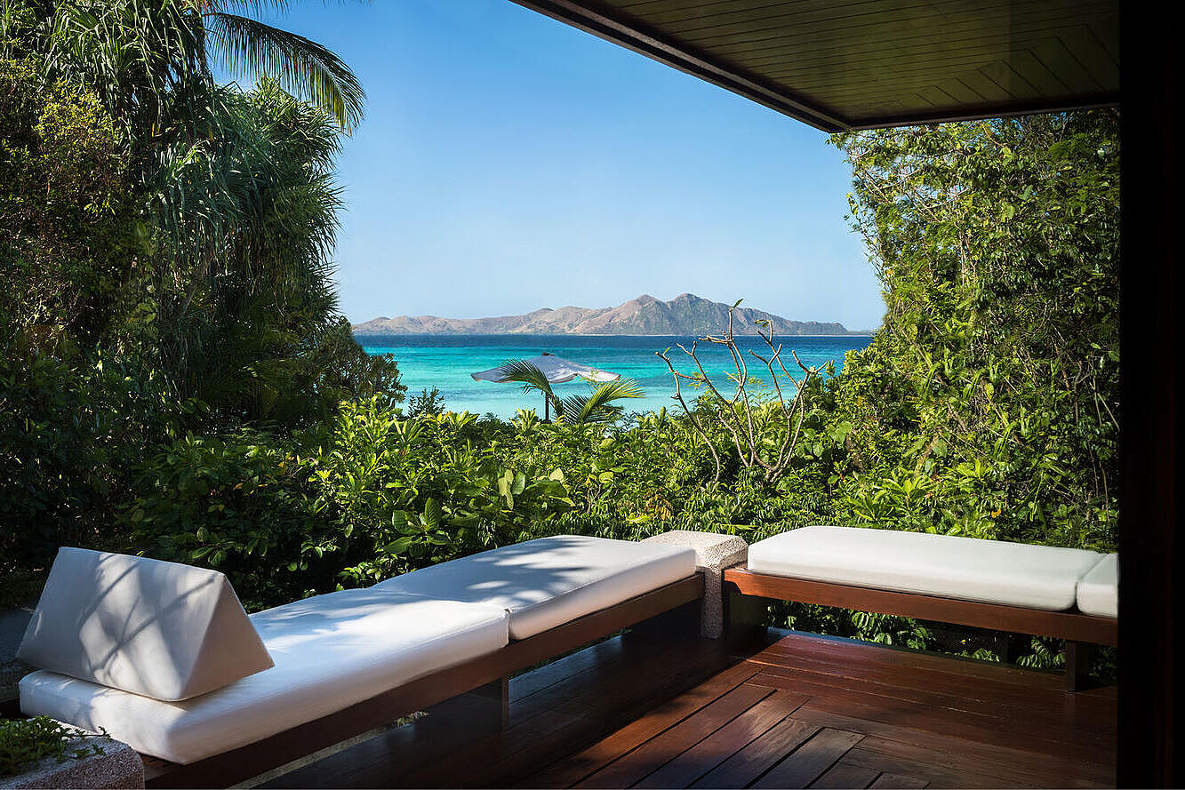 Die Deluxe Hillside Casita von Amanpulo liegt erhöht am Hang und bieten unvergleichlichen Panoramablick auf das Meer und die benachbarten Inseln. Eine private, ruhige Holzterrasse lädt dazu ein, die Szenerie in aller Ruhe zu genießen. Innen schaffen gewölbte Decken, Kingsize-Bett und großzügiges Badezimmer mit Marmordetails und tiefen Badewannen eine luxuriöse und luftige Atmosphäre – ideal für Paare auf der Suche nach einem idyllischen Inselrefugium.