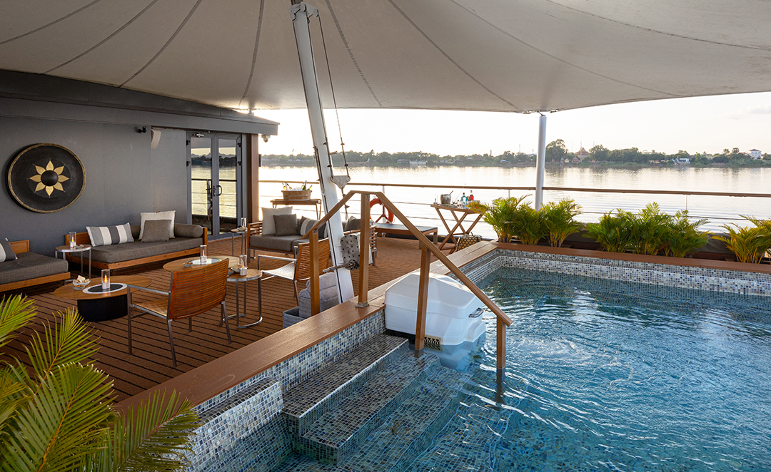Die Aqua Mekong von Aqua Expeditions ist ein stilvolles Luxus Flussschiff, das Komfort, Eleganz und authentische Entdeckungen entlang des legendären Mekong vereint. Klein und exklusiv konzipiert, bietet dieses Schiff ein intimes Ambiente, in dem persönliche Betreuung, hochwertige Ausstattung und sinnliche Begegnungen mit Landschaft, Kultur und Lebensart der Region im Mittelpunkt stehen. Die Architektur und Innenausstattung verbinden moderne Eleganz mit lokal inspirierten Elementen, während lichtdurchflutete Aufenthaltsbereiche und großzügige Panoramafronten den Blick stets auf das Flussland richten.