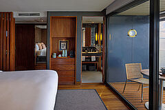 Die Luxury Suite bietet ausgewogenen Komfort in stilvoller Atmosphäre. Edle Materialien, ruhige Farbwelten und großzügige Fenster sorgen für entspannte Rückzugsmomente während der Reise.