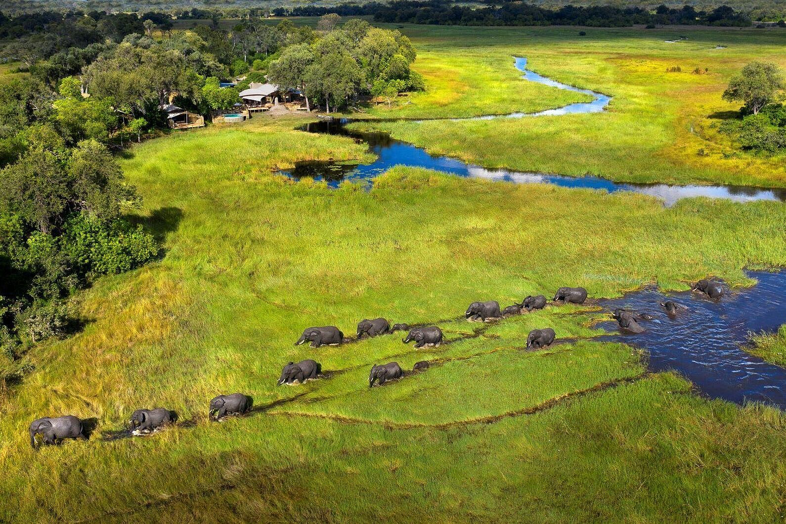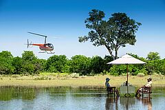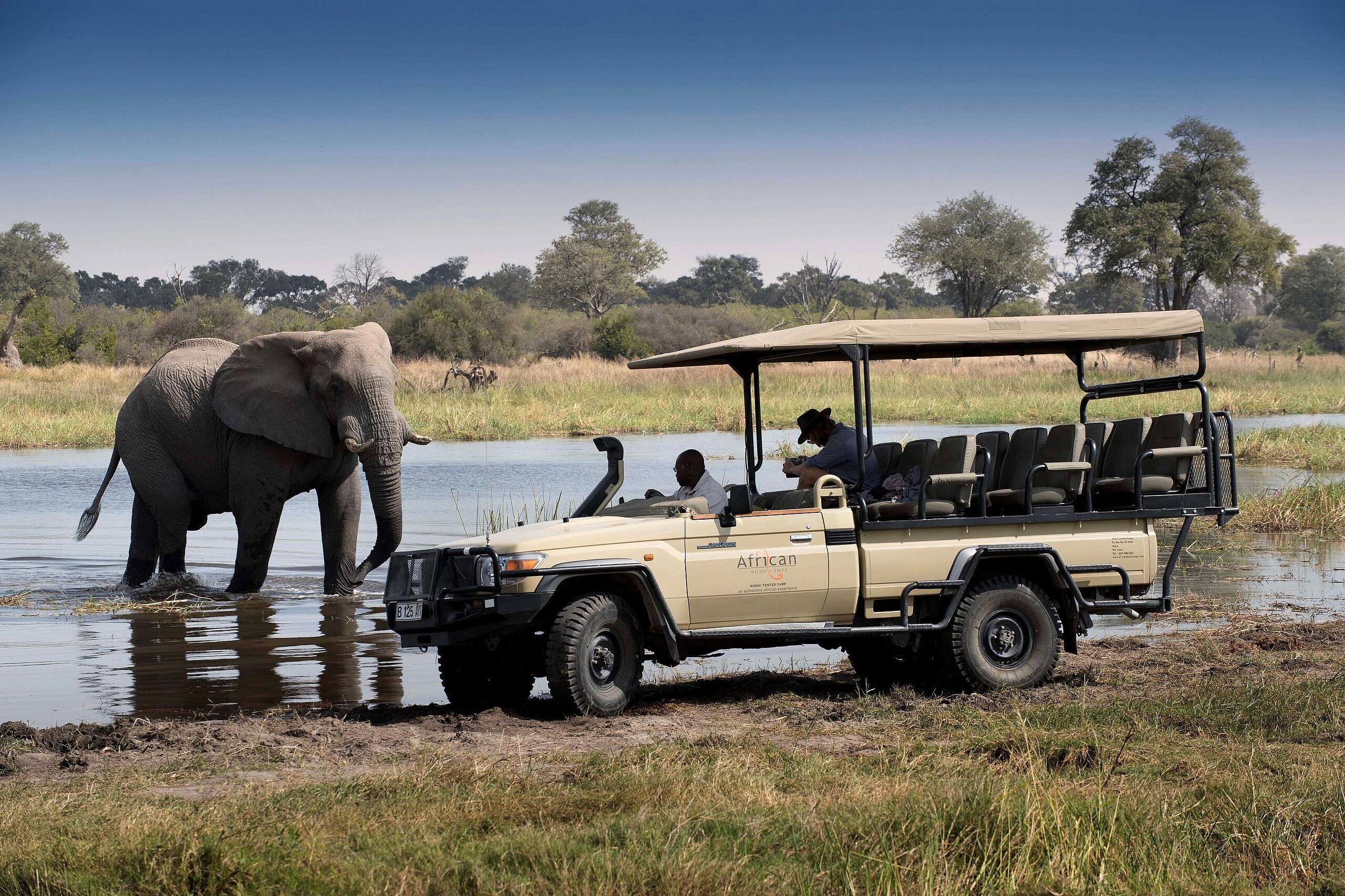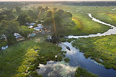 Das Khwai Leadwood Camp liegt am Rande des berühmten Moremi Game Reserve im nordöstlichen Okavango-Delta in Botswana, direkt am Ufer des Khwai Rivers. Die Anreise erfolgt in der Regel per Kleinflugzeug von Maun aus, dem Tor zum Okavango-Delta. Nach einem ca. 30-minütigen Flug über die Savanne erreichen Sie die private Landepiste in der Nähe des Camps, von wo aus ein kurzer Transfer Sie direkt in die Oase aus Zeltsuiten, Flussblick und Buschabenteuern bringt. Alternativ ist die Anreise über die Straßen Bostwanas mit Allradfahrzeugen möglich, wobei die vier stündige Fahrt durch abwechslungsreiche Landschaften bereits einen Vorgeschmack auf die Safarierlebnisse bietet.