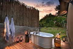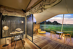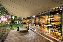 Khwai Leadwood verfügt über fünf luxuriöse Zeltsuiten, eine Familienzeltsuite sowie eine exklusive Honeymoon-Suite, jeweils mit privater Terrasse, von der aus sich der afrikanische Busch in seiner ganzen Pracht beobachten lässt. Die Familiensuite ist geschickt mit verbundenen Schlafzimmern gestaltet, die sowohl Privatsphäre als auch Komfort für Groß und Klein bieten.