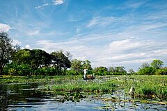 Die sieben Zelt-Suiten, darunter eine Familienzeltsuite und eine luxuriöse Honeymoon-Zeltsuite, liegen zwischen beeindruckenden Leadwood-Bäumen. Alle Zeltsuiten verfügen über eine private Terrasse, von der aus Sie einen perfekten Blick auf den afrikanischen Busch genießen können. Erleben Sie unvergessliche Pirschfahrten, Nachtfahrten und Wandersafaris und tauchen Sie ein in die faszinierende Vielfalt der afrikanischen Tierwelt. Auf traditionellen Mokoro-Touren, fachkundig begleitet von einheimischen Polern, gleiten Sie durch die stillen Gewässer des Khwai-Flusses und entdecken die farbenprächtige Vogelwelt, die das Delta bevölkert. Auch Familien sind im Khwai Leadwood herzlich willkommen: Der Ngwana Club bietet jüngeren Gästen sorgfältig gestaltete Safari-Aktivitäten, die Abenteuer pur für kleine Entdecker bedeuten, aber natürlich auch Sicherheit als oberste Priorität haben.