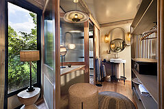 Alle Suiten verbinden Design mit funktionalem Komfort: Kingsize-Betten, Moskitonetze, Innen- und Außenduschen sowie eine gut bestückte Minibar sorgen für einen sorgenfreien Aufenthalt. Die Honeymoon-Suite verfügt zusätzlich über eine Außenbadewanne – perfekt, um unter dem Sternenhimmel zu entspannen und den Tag ausklingen zu lassen.