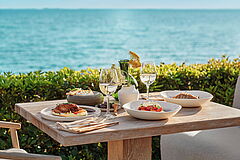 Traditionelle, feine griechische Küche wird im Ouzo serviert - begleitet vom rauschen des Meeres, wenn Sie in den Tag starten oder mit einem guten Wein den Abend ausklingen lassen wollen.