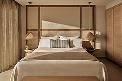 Erlesene Eleganz spiegelt sich in den 142 Zimmern und Suiten sowie den 149 Bungalows wider. Harmonisierende Farbtöne in Blau und Grau, ausgesuchtes Interior und Komfort und ein offenes, luftiges Raumdesign laden zum wohlfühlen und verweilen ein.