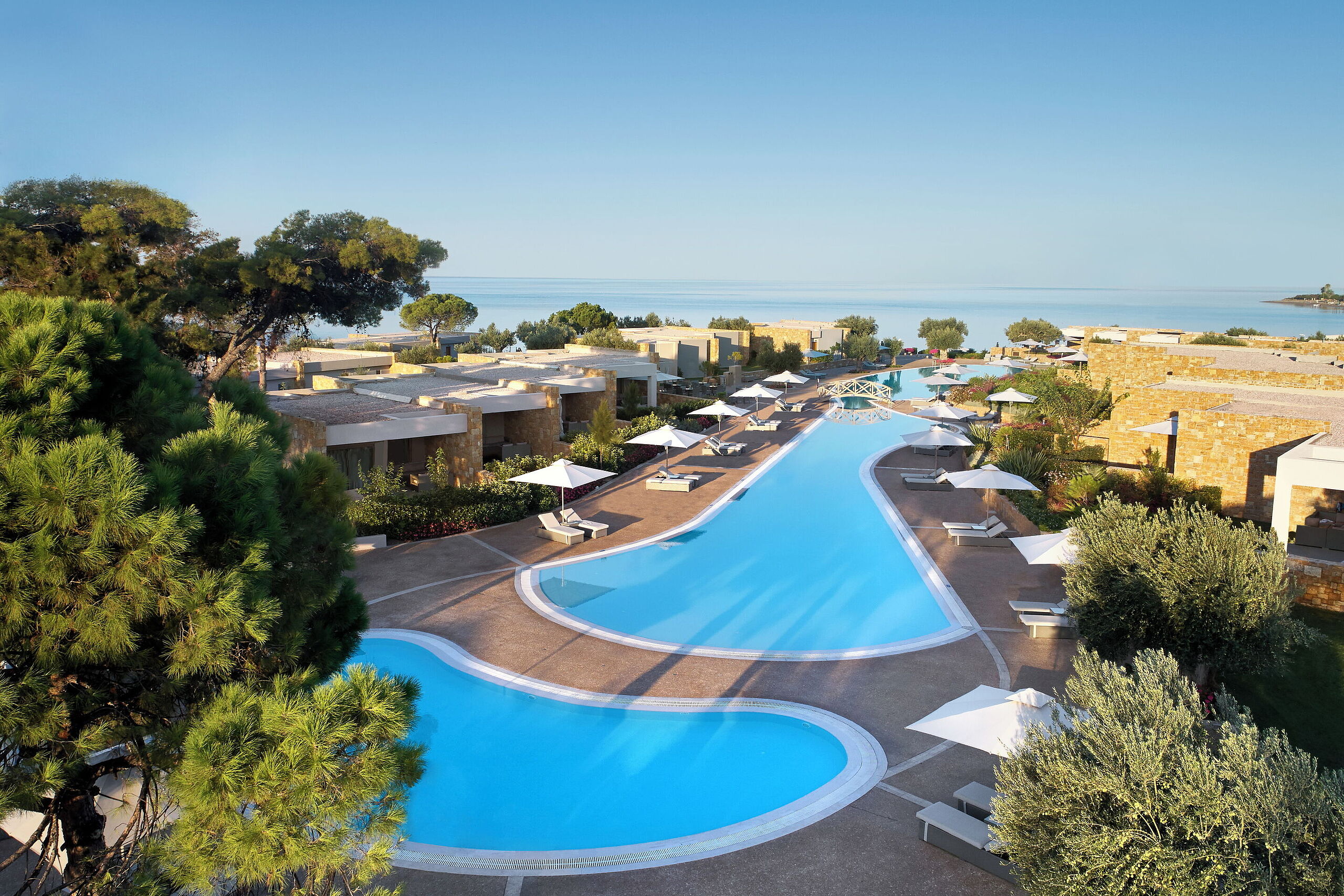 Drei verschiedene Pools und der Spa-Bereich bieten Ihnen individuelle Rückzugsmöglichkeiten, bei denen Sie sich erholen können, während sich Ihre Kleinen in guten Händen am Strand vergnügen. Egal ob Erholung, Abenteuer oder Unterhaltung: Im Luxushotel Ikos Olivia finden Sie alles was Ihr Herz begehrt.