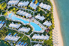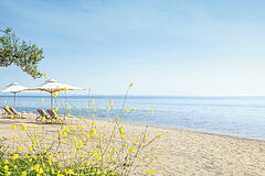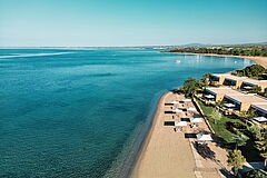 Inmitten einer 22 Hektar großen immergrünen Gartenlandschaft liegt das moderne Ikos Oivia auf der Halbinsel Chalkidiki in Griechenland. Die Olivenbäume begleiten Sie bis zum feinen Sandstrand, der mit dem azurblauem Meer verschmilzt. Die Stadt Thessaloniki und der Flughafen sind etwa 70 Kilometer entfernt.