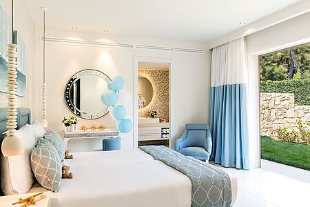 Diese großzügige Suite ist Ideal für Familien mit kleinen Kindern. Neben einer großzügigen Terrasse ist diese Suite nur wenige Meter vom Sandstrand entfernt.