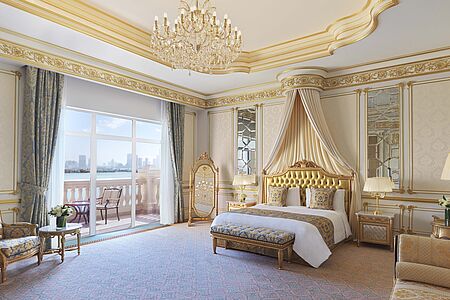 Künstliche Inseln in Palmenform und das höchste Gebäude der Welt – Dubai ist definitiv eine Stadt der Superlative! Dass dieser Aspekt auch auf die Hotels der „Boom-City“ zutrifft, beweist das Raffles The Palm Dubai auf eindrucksvolle Art und Weise. Das 5-Sterne-Luxus Resort, befindet sich auf dem äußersten Ring der bereits erwähnten Palmeninsel „Palm Jumeirah“ und bietet seinen Gästen einiges: Großzügige Zimmer und Suiten, einen traumhaften Privatstrand, ein exklusives Unterhaltungsprogramm und zahlreiche andere Vergnügungsmöglichkeiten, die Ihren Geist und Körper verzaubern werden. DasRaffles The Palm Dubai ist im Stil dem Schloss von Versailles nachempfunden und das in jedem Detail. Dementsprechend lange dauerte auch die Bauphase bis wirklich alles stimmte. So versteht es das Hotel seinen Gästen in jedem Detail die opulente Eleganz der europäischen Schlösser des 18. Jahrhunderts gepaart mit allen luxuriösen Annehmlichkeiten eines 5-Sterne-Resorts zu bieten ohne je schwer zu wirken. Betreten Sie im Raffles The Palm Dubai eine faszinierende Welt, die Ihnen keine Wünsche offen lässt. Denn: Das spezielle Flair und die luxuriöse Ausstrahlung der Wüstenmetropole Dubai erfahren Sie am besten in einem Hotel wie dem Raffles The Palm Dubai – Herzlich willkommen in dieser Oase des Glücks!