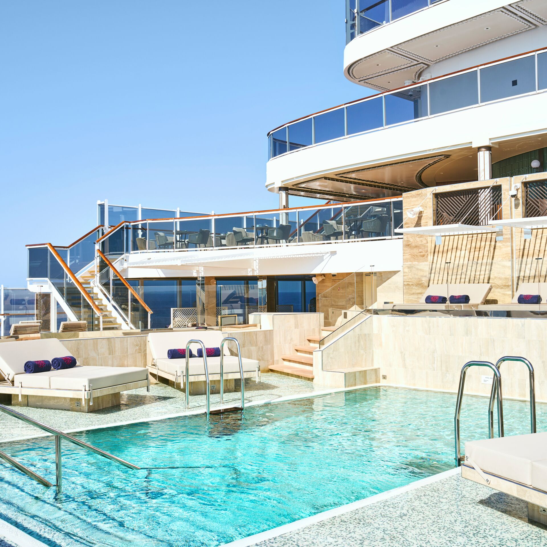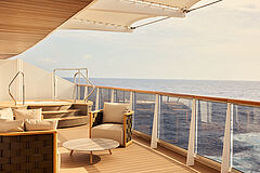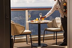 Die Ocean Terrace Suite bietet lichtdurchflutete Räume, stilvolles Design und eine private Terrasse mit Meerblick. Dezente Farben, edle Materialien und durchdachte Details schaffen einen eleganten Rückzugsort auf See.