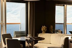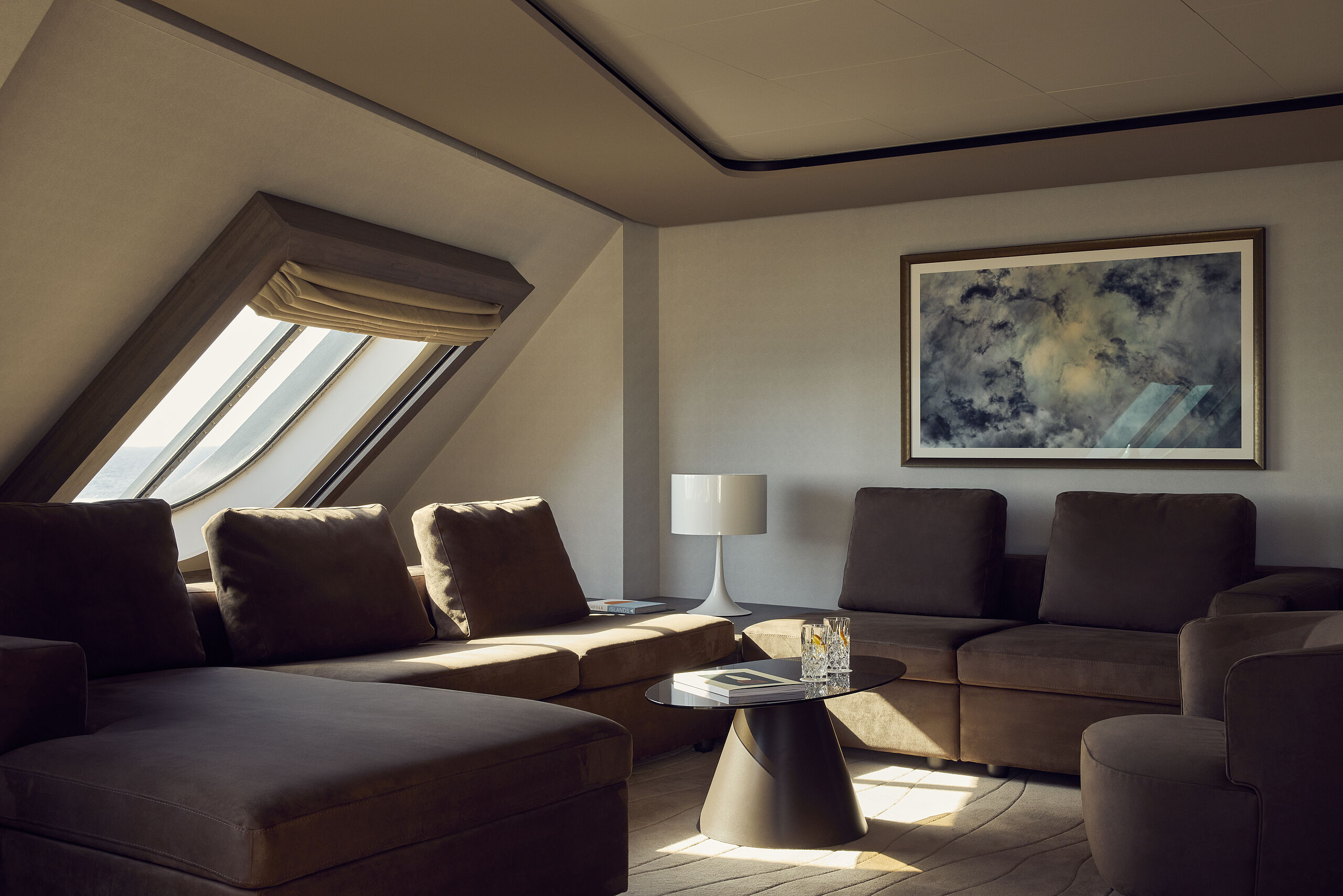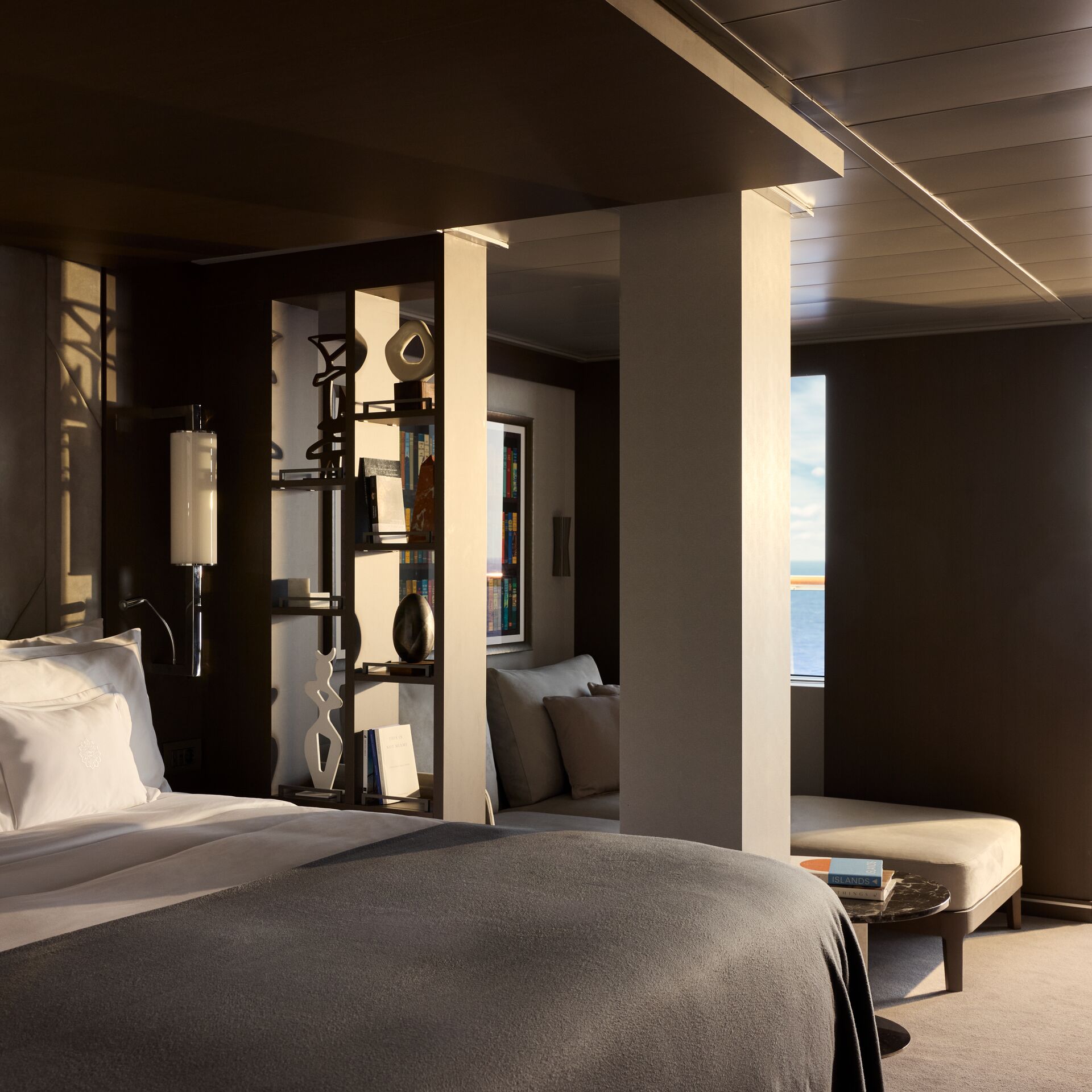 Die Owner’s Residence entfaltet sich als außergewöhnlich großzügige Seeresidenz mit separatem Wohn-, Ess- und Schlafbereich sowie weitläufiger privater Terrasse. Edle Materialien, maßgefertigte Möbel und bodentiefe Fenster eröffnen einen ungehinderten Blick auf den Ozean.
