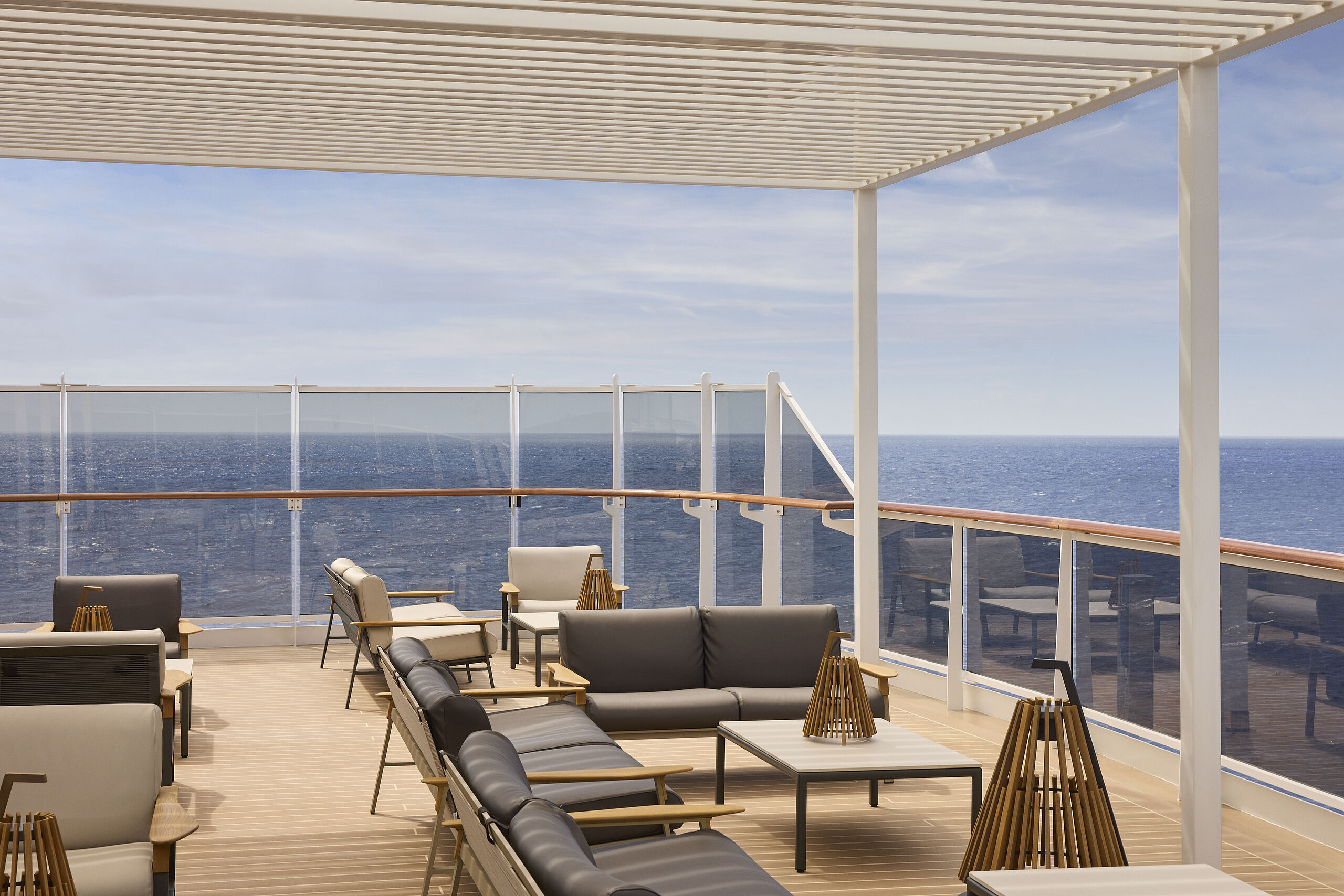 - Weitläufige Außendecks mit über 2.500 m² Fläche für Entspannung und Meerblick