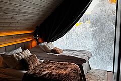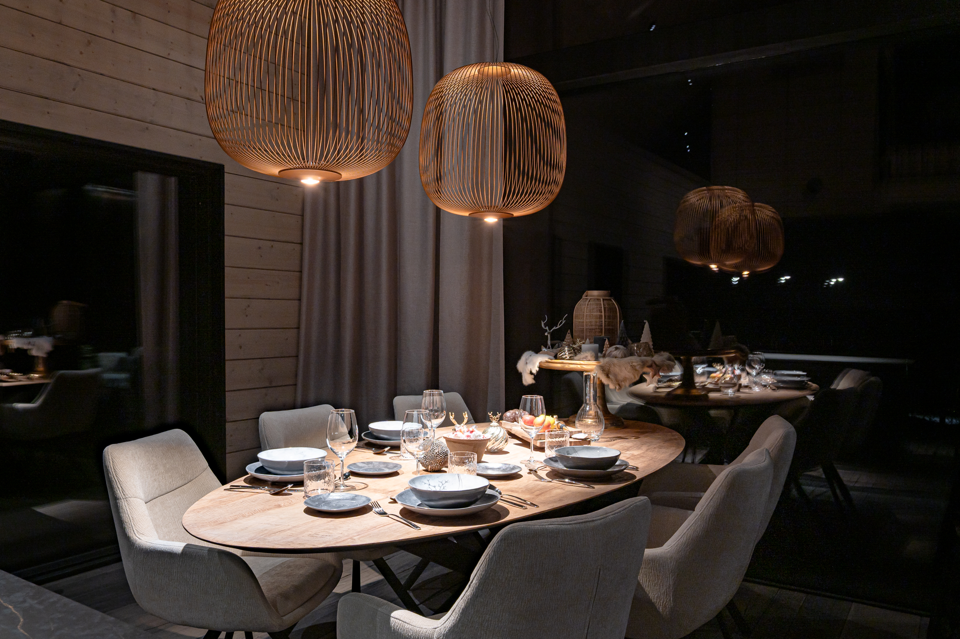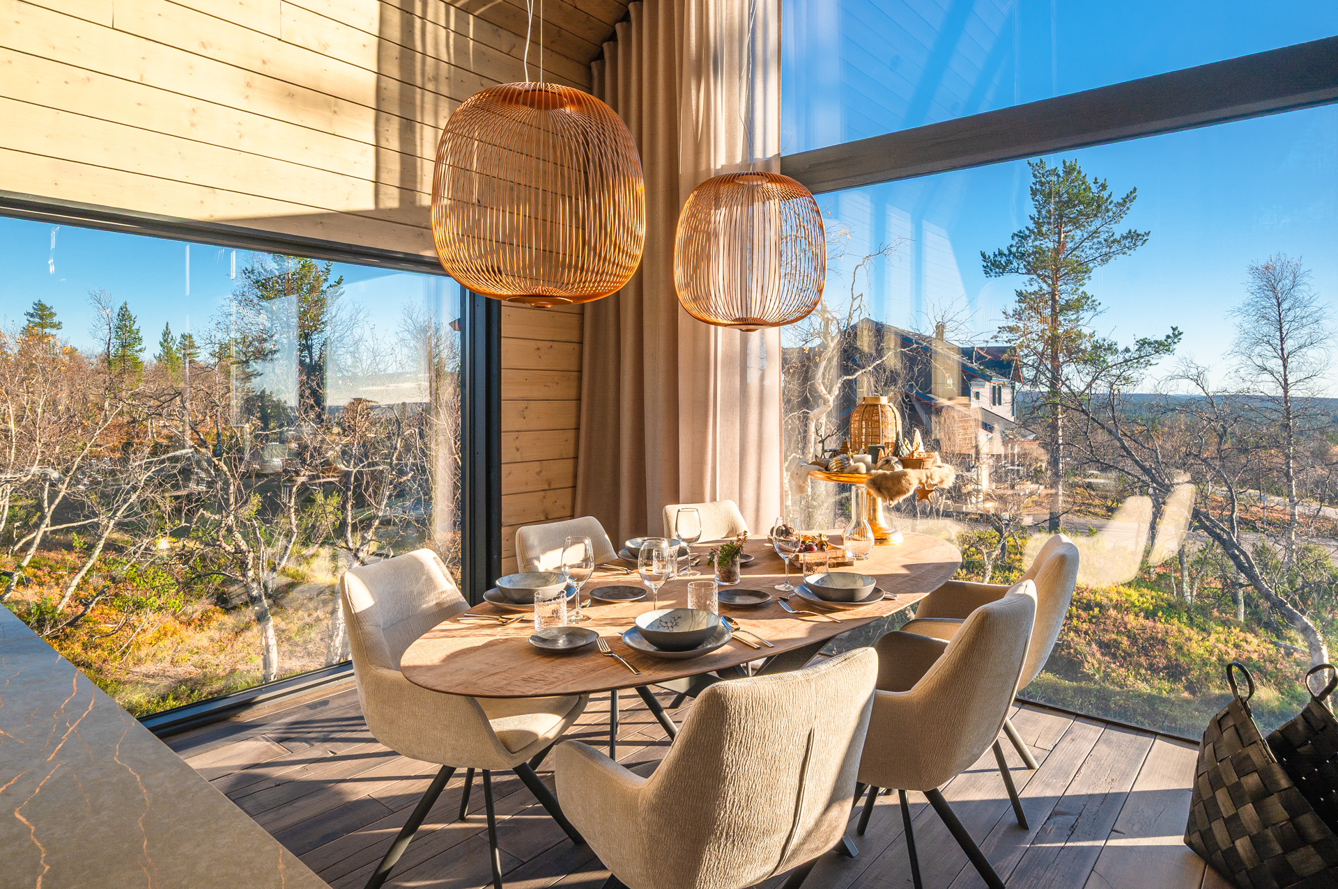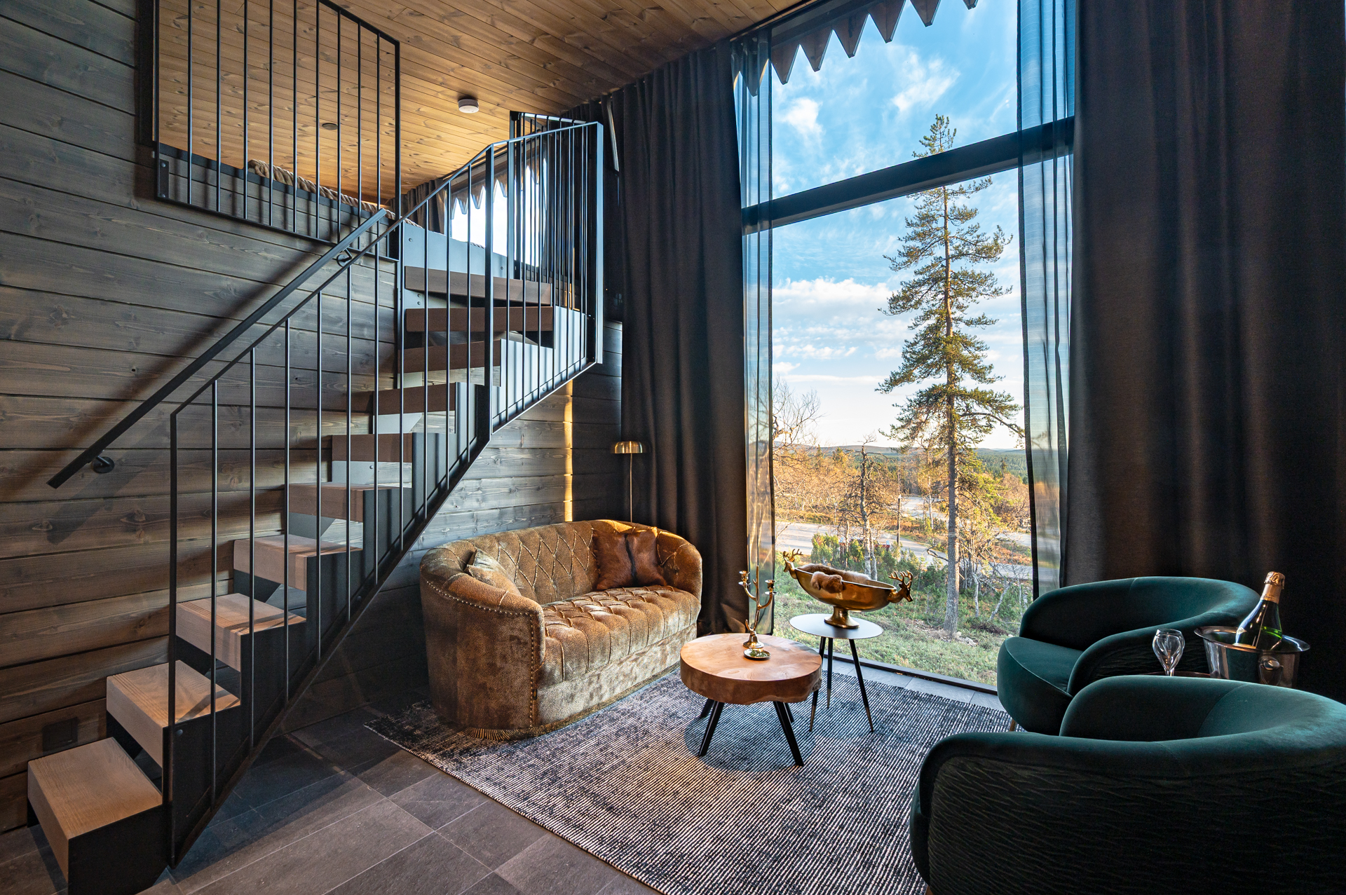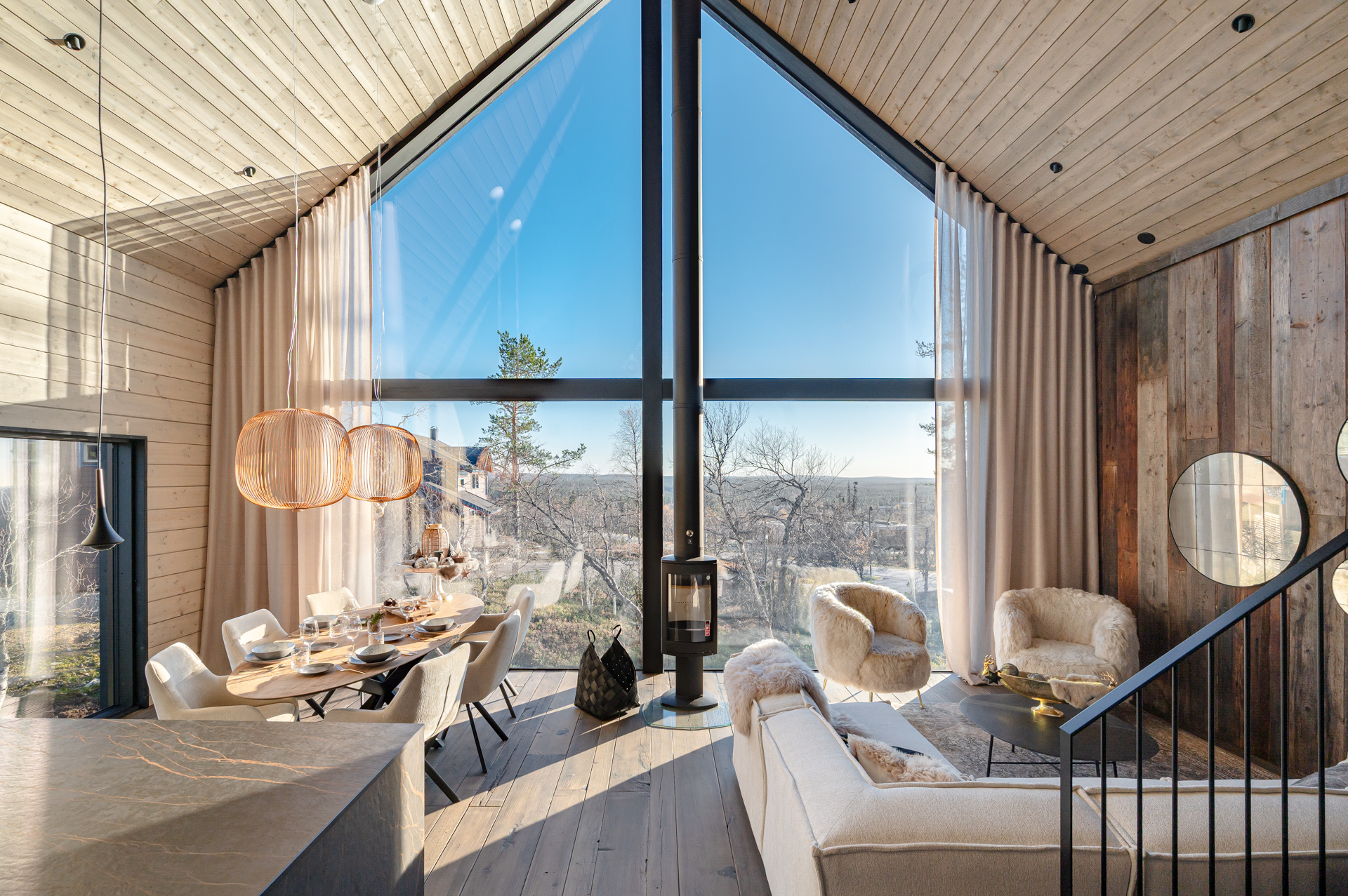 Das Grand Panoramic Chalet bietet Platz für bis zu 8 Gäste in drei individuell en‑suite Badezimmern ausgestatteten Schlafzimmern, inklusive eines Master‑Bedrooms mit freistehender Badewanne. Große Panoramafenster öffnen den Blick auf die stille Landschaft Lapplands, während ein separater Sauna Lounge‑Bereich mit beheiztem Outdoor‑Jacuzzi fantastische Momente unter dem arktischen Himmel verspricht. Ein weitläufiger Esstisch lädt zu gemeinsamen Mahlzeiten oder privaten Dinner‑Erlebnissen mit personalisierten Chef‑Services ein.
