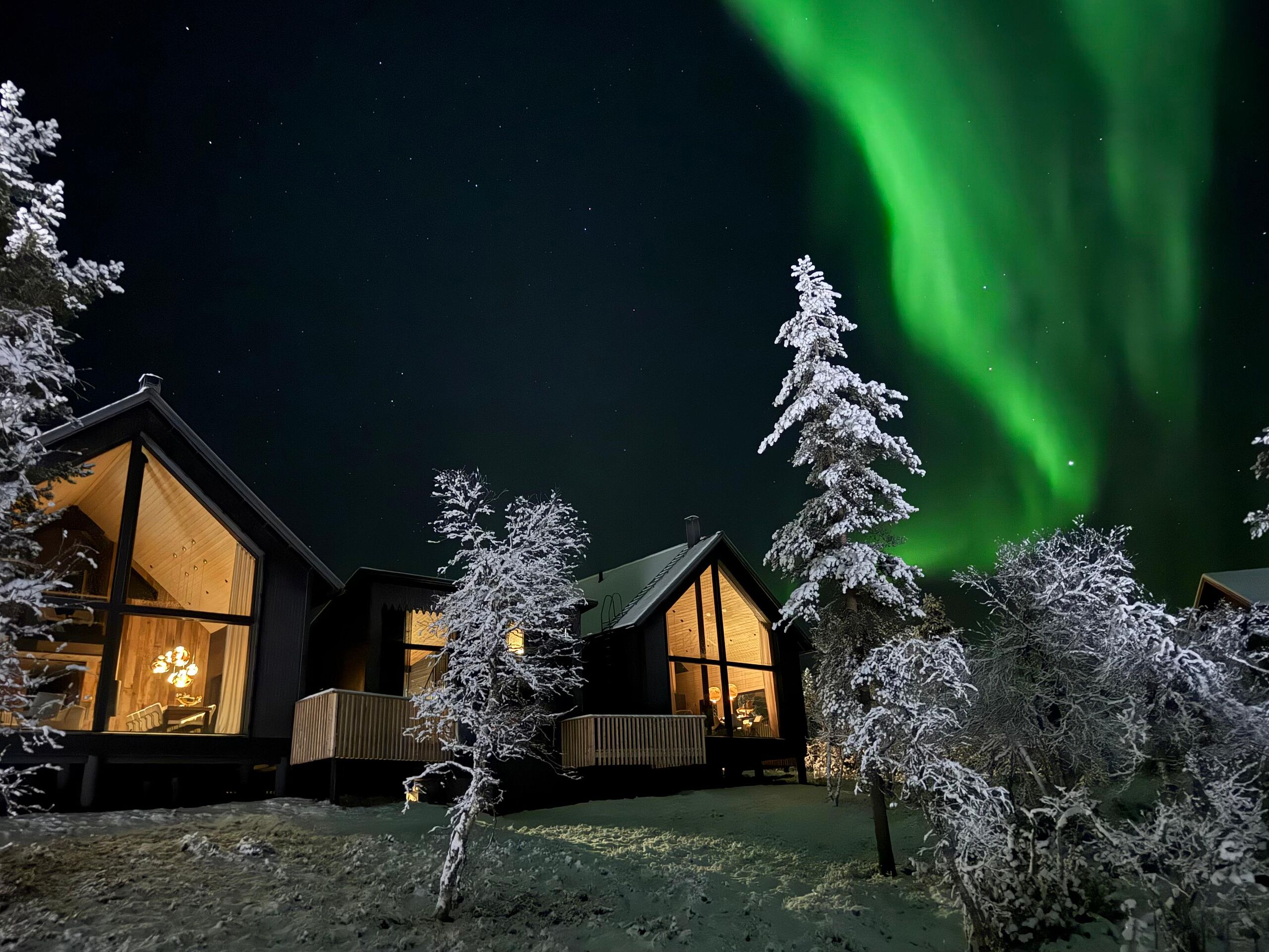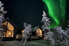 Ein Refugium tief in der stillen Wildnis Lapplands, wo endlose Schneelandschaften und dunkle Winterhimmel das Reich der Nordlichter formen. Umgeben von verschneiten Wäldern und klarer Polarluft liegen die Aura Arctic Chalets abgeschieden und zugleich gut erreichbar – ein idealer Ort, um dem Alltag zu entgleiten. Warme Naturmaterialien, großzügige Fensterfronten und das sanfte Knistern des Kamins schaffen ein behagliches Zuhause mitten in der Arktis. Draußen bestimmen außergewöhnliche Erlebnisse den Rhythmus des Tages: Schneeschuhwanderungen durch unberührte Landschaften, Huskyschlittenfahrten oder entspannte Momente in der Sauna unter freiem Himmel. Ein perfekter Ort um stille Momente in vollen Zügen zu genießen.