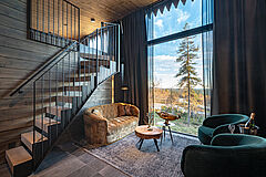Das Grand Hideaway entfaltet eine harmonische Balance aus Privatsphäre und stilvollem Komfort in der stillen Landschaft Lapplands, ideal für bis zu sechs Gäste. Drei individuell gestaltete Schlafzimmer mit eigenem Bad garantieren behagliche Ruhe und Komfort, darunter ein großzügiges Master‑Bedroom mit freistehender Badewanne. Ein Highlight ist die Wilderness Sauna mit beheiztem Außen‑Jacuzzi, von dem aus sich weite Ausblicke über die arktische Natur eröffnen und Sternenhimmel sowie Nordlichter fast zum Greifen nah erscheinen.