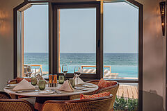 Dieses elegante Restaurant direkt am Strand vereint internationale Aromen mit mediterranen und arabischen Einflüssen. Raffinierte Gerichte werden in modernem Ambiente mit Blick auf das Meer serviert.