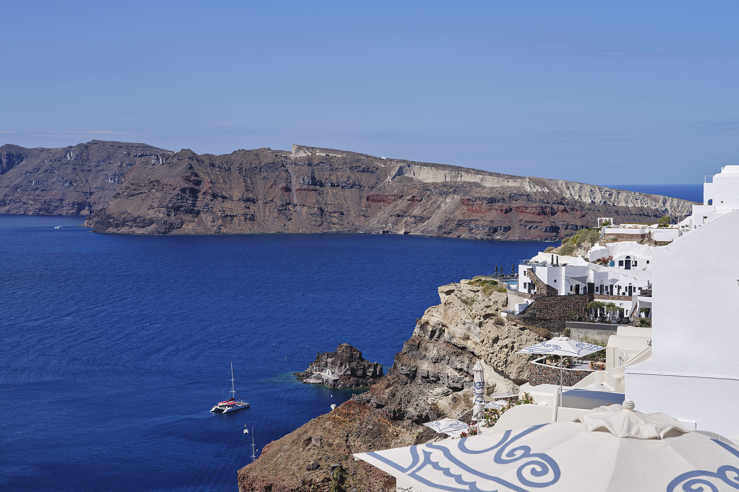 Hoch über der berühmten Caldera im malerischen Dorf Oia auf Santorini gelegen, bietet das Andronis Boutique Hotel spektakuläre Ausblicke über die Ägäis. Der internationale Flughafen Santorini International Airport ist etwa 30 Fahrminuten entfernt. Private Transfers führen durch die eindrucksvolle Inselkulisse bis in die charmanten Gassen von Oia.
