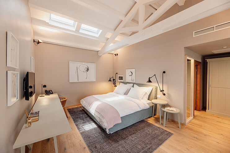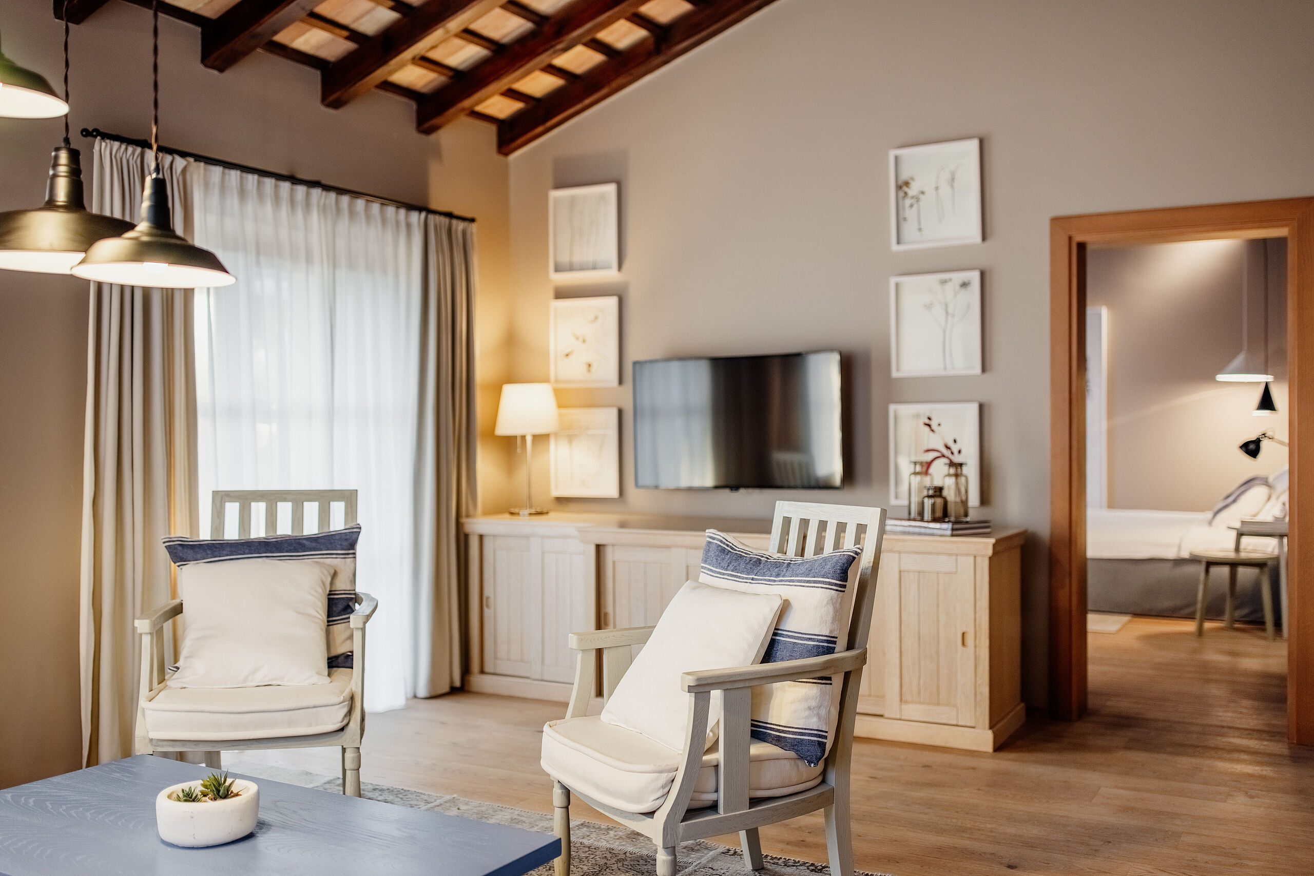 Die Executive Suite bietet ein Kingsize-Bett, eine Sitzecke samt Schreibtisch, Balkon mit Blick auf den Swimmingpool und die Weinberge. Die neu erbaute Suite bietet reizvolle Momente zu jeder Jahreszeit. Das Badezimmer verfügt über eine bodengleiche Dusche, Make-up-Spiegel, Haartrockner, Bademäntel und vieles mehr. Weiterhin verfügt die Suite über kostenfreies Wlan, Fernseher, Telefon, Minibar und Safe.
