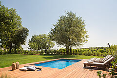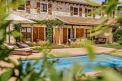 Jedes Schlafzimmer verfügt über ein Kingsize-Bett sowie ein eigenes Badezimmer. Die Residence verfügt über eine Kochnische sowie ein offene Wohn- und Esszimmer. Im Außenbereich steht Ihnen eine private Terrasse mit Ess- und Loungebereich zur Verfügung. Der Garten selbst bietet einen Pool sowie einen herrlichen Blick auf die Olivenhaine. Die Residenz bietet puren Komfort und Intimität.