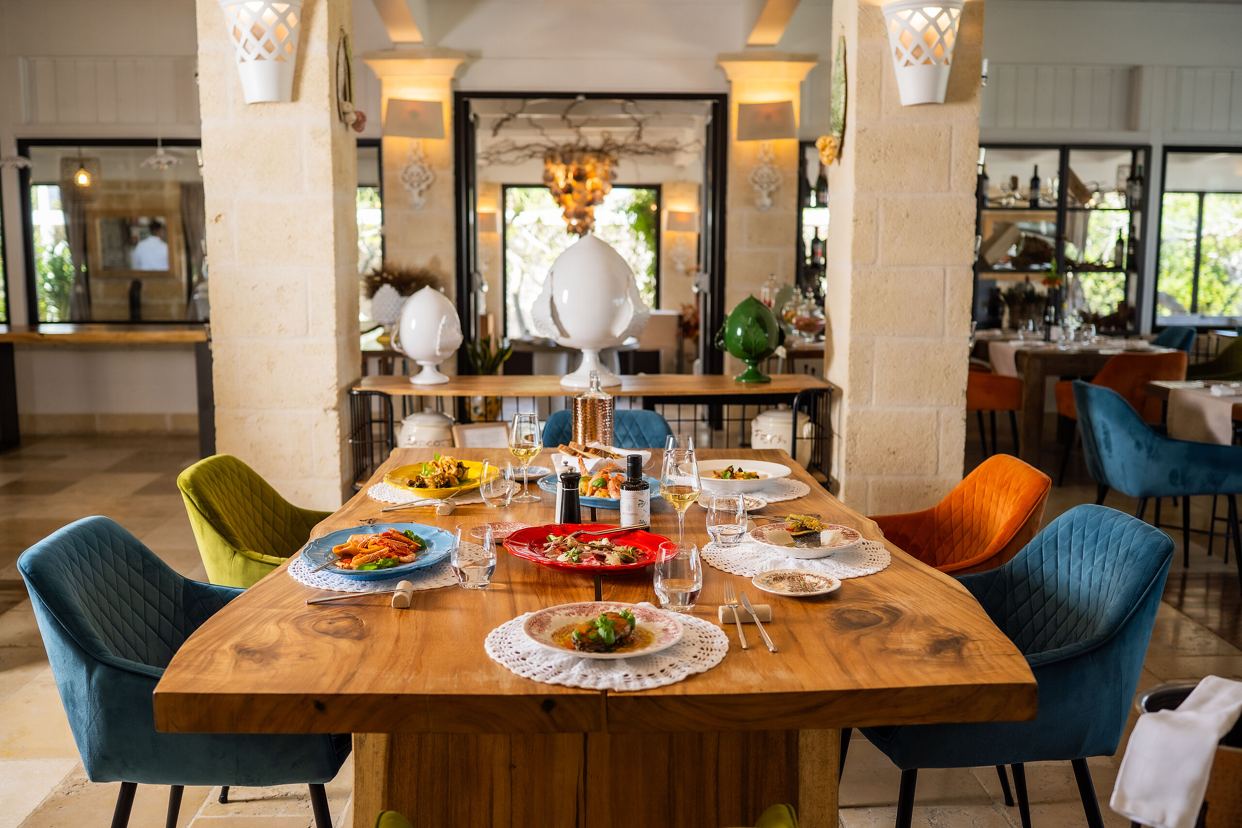 Eine Ode an die apulische Kulinarik – kreative, saisonale Gerichte, die lokale Zutaten und traditionelle Aromen mit moderner Raffinesse verbinden, serviert in elegantem Ambiente oder auf der Terrasse unter dem Sternenhimmel, begleitet von einer erlesenen Auswahl regionaler und internationaler Weine.