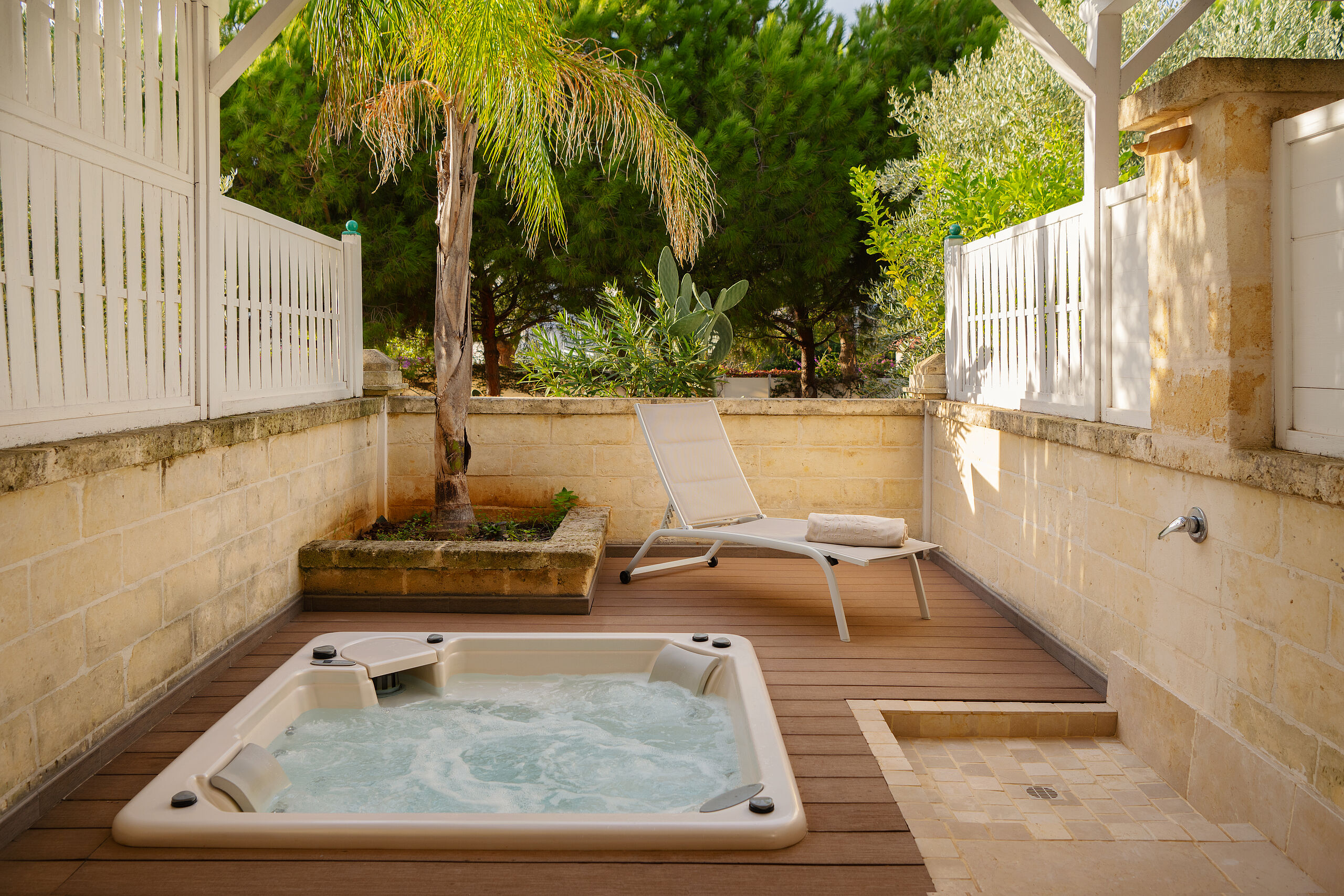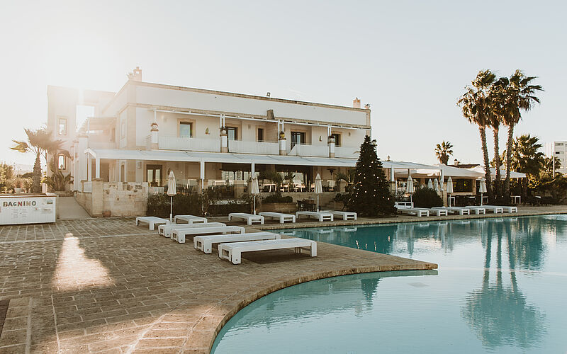 Der großzügige Süßwasser‑Pool mit bequemen Liegebereichen und grünen Gärten lädt zum Entspannen unter der Sonne Apuliens ein. Am Meer bieten Wassersport, Spaziergänge am Strand oder Radtouren entlang der Küste abwechslungsreiche Möglichkeiten, während Yoga und Aktivitäten im Freien für neue Energie und Ausgeglichenheit sorgen.