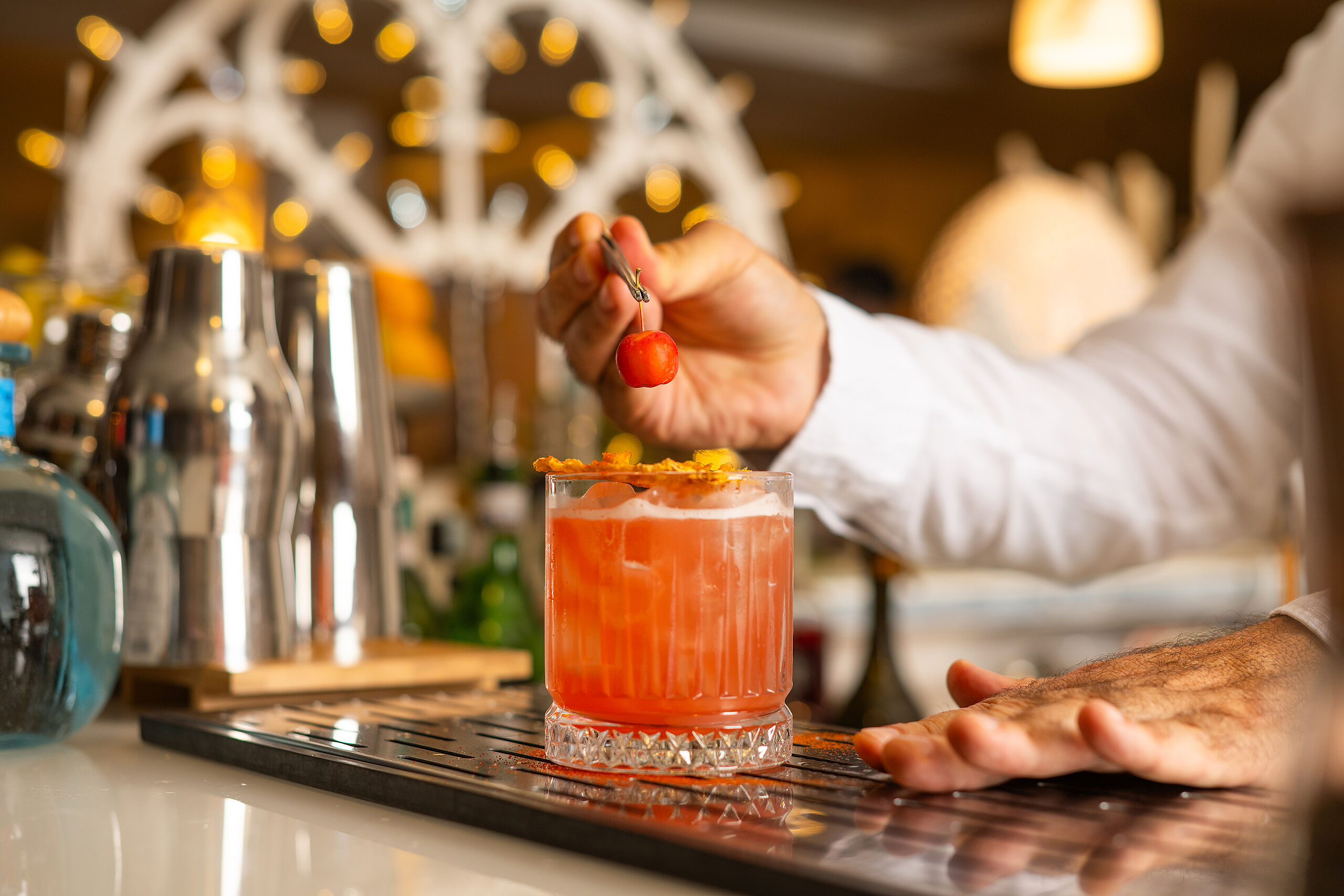 Ein stilvoller Ort für Kaffee, Aperitifs oder Cocktails, an dem lokale Kräuter und Früchte zu leichten Kompositionen verschmelzen und die sonnige Atmosphäre Apuliens widergeben.
