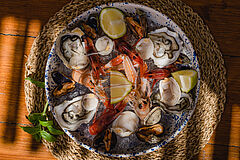 Direkt am Meer eröffnet sich auf der Panoramaterrasse ein kulinarisches Fest mit frischem Fisch, leichten Meeresfrüchte‑Kreationen und Pizza‑Varianten, die mediterrane Leichtigkeit und die Atmosphäre der Küste in jedem Bissen widerspiegeln.