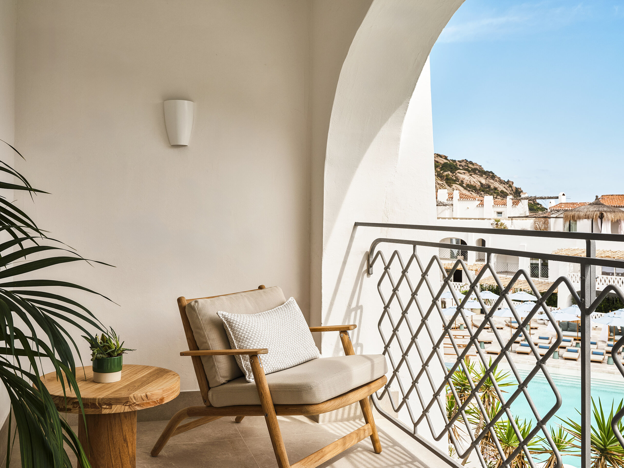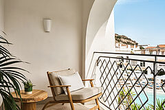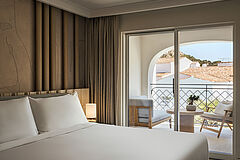 Der Superior Room verfügt über ein komfortables King‑Size‑Bett und einen privaten Balkon mit Blick auf den Pool.