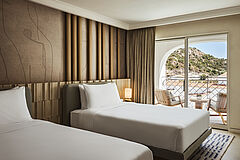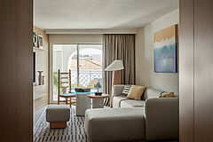 Mit großzügigem Wohnbereich, stilvoller Einrichtung und einer einladenden Terrasse lädt die Studio Suite zu entspannten Stunden in mediterraner Atmosphäre ein.