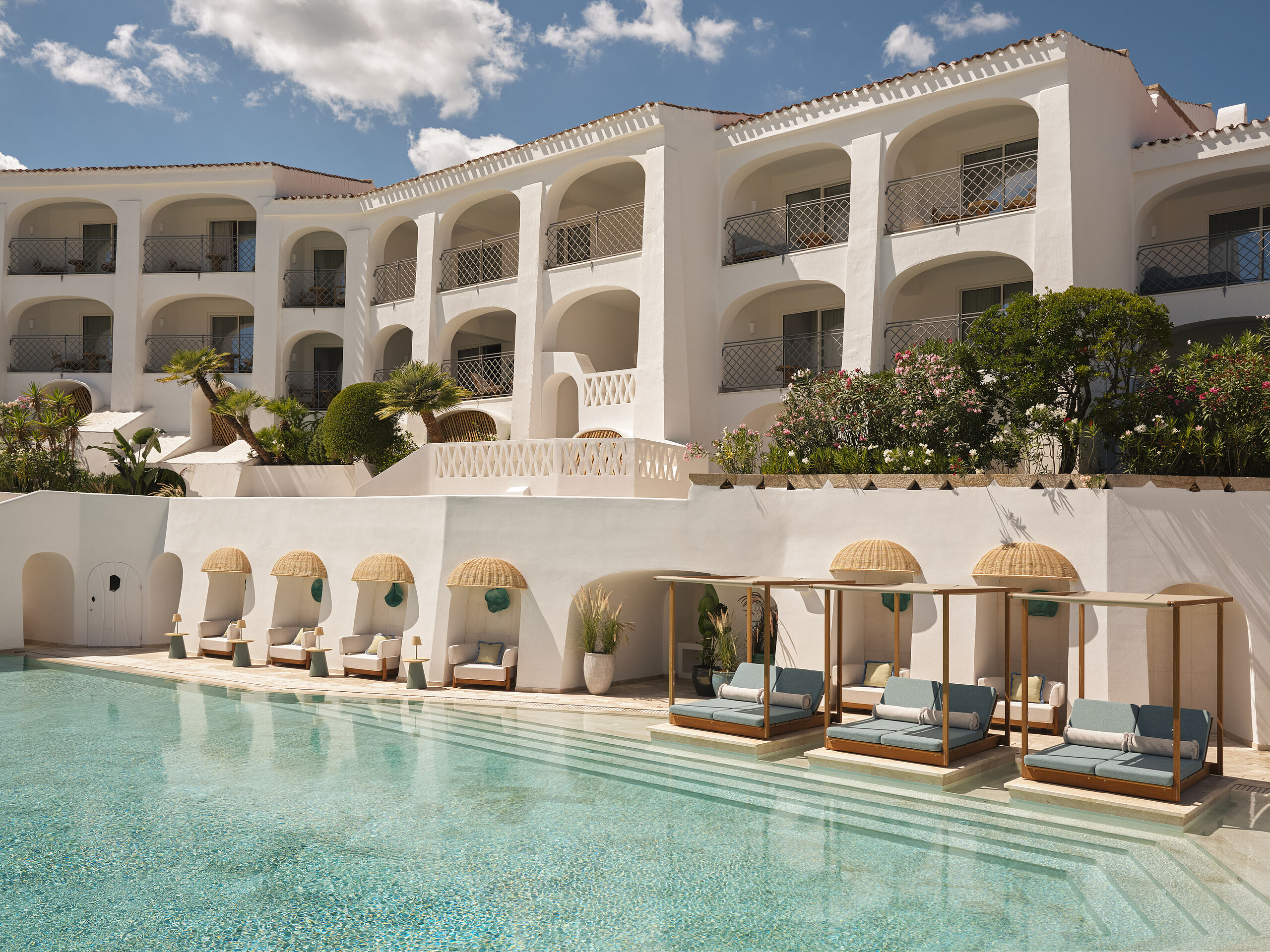 Die Architektur greift sardische Formen und Materialien auf und übersetzt sie in eine moderne Designsprache. Helle Farben, Naturstein und Holz schaffen eine Leichtigkeit, die sich in den Zimmern und Suiten fortsetzt – großzügige Rückzugsorte, vielfach mit Terrassen und Blick auf Meer oder Hafen. Das W Sardinia – Poltu Quatu bietet eine traumhafte Küstenlage und zahlreiche Erlebnisse, die jeden Aufenthalt zu etwas Besonderem machen.