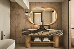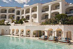 Zwei Schlafzimmer und drei Badezimmer sowie eine weitläufige Terrasse mit privatem Pool bieten besonders viel Platz. Mit separatem Wohn‑ und Essbereich, voll ausgestatteter Küche und atemberaubendem Blick über den Yachthafen bietet die Suite ein Höchstmaß an Komfort.