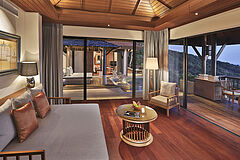 Die Pool Villa One Bedroom liegt direkt am Hang und bietet somit einen wunderbaren Blick auf die Bucht und das Meer. Drehen Sie nach dem Aufwachen einige Runden im Pool oder nutzen Sie die Liegen auf dem Sonnendeck. Der abgetrennte Wohnbereich und eine kleine Küche runden Ihr neues Zuhause auf Zeit ab.