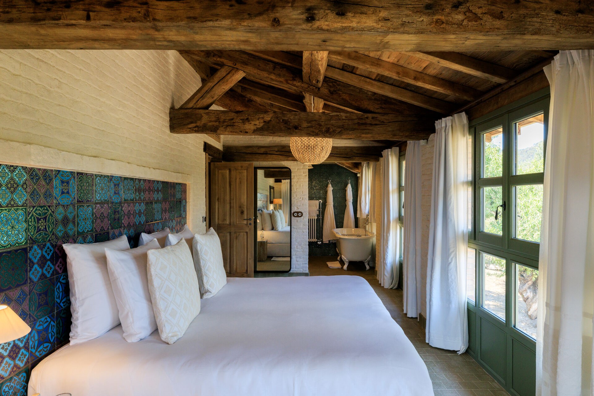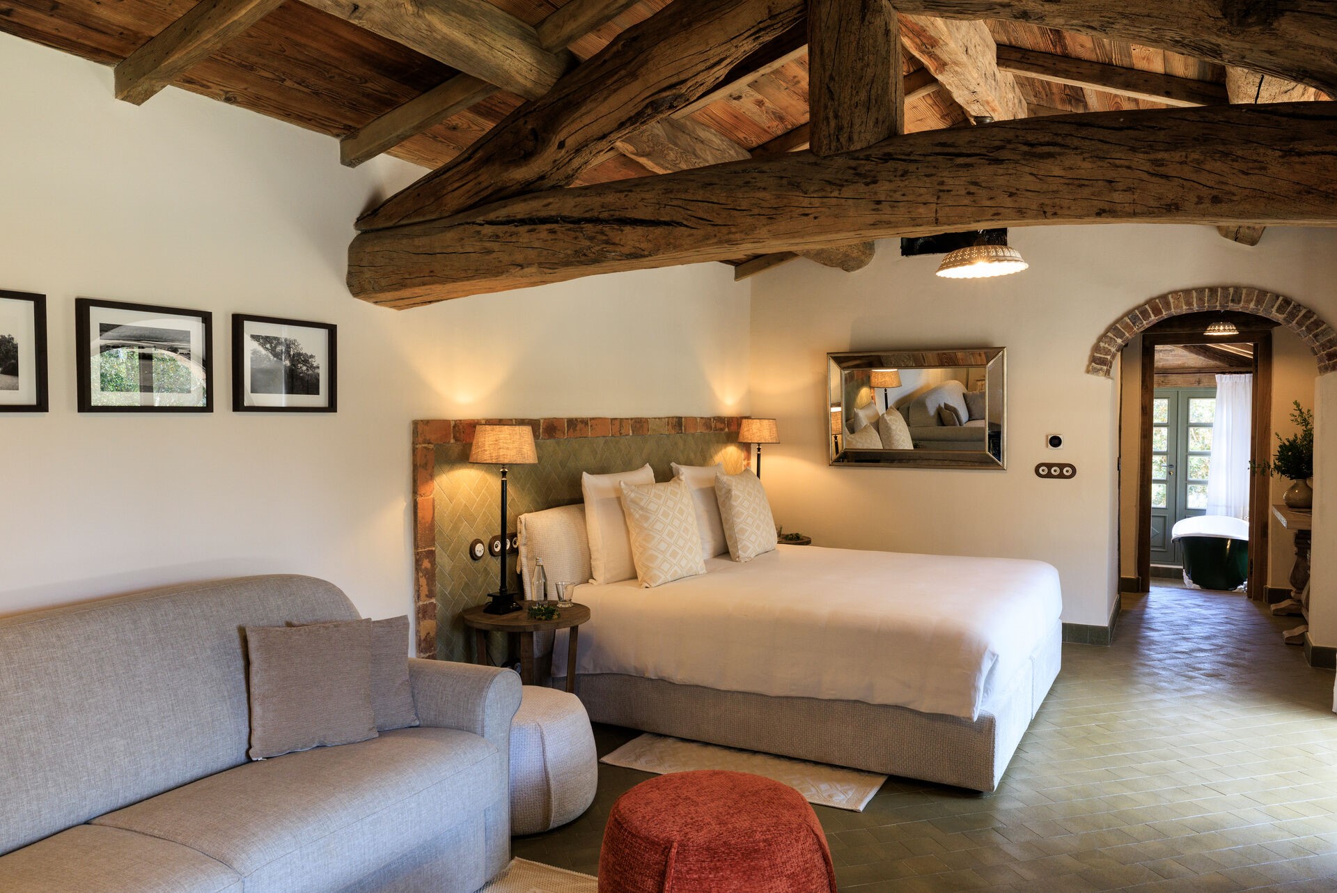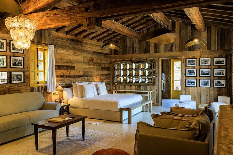Amandula beeindruckt durch ihre harmonische Verbindung aus rustikalem Charme und modernem Luxus, ergänzt durch eine eigene Poolterrasse mit Blick in die grüne Landschaft.