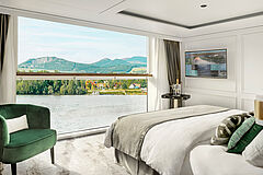 Die Ravel Suite beeindruckt durch ihre weitläufige Raumaufteilung und bodentiefe Panoramafenster, die den Blick in die Landschaft nahtlos in das Interieur hineinziehen.