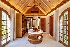 Alle Villen verbinden sorgfältige Architektur mit verspielten Boho-Designakzenten. Die Villen verfügen über geräumige Bäder mit begehbaren Ankleiden, Outdoor-Badewannen und -Duschen sowie private Pools ab acht Metern Länge. Die Water Villas bieten zudem ein Sonnendeck, Hängematten über dem Wasser und Wasserrutschen von 18 Metern Länge.