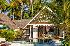 Die Beach Pool Villa liegt unmittelbar am Strand und bietet einen weitläufigen Wohn- und Schlafbereich sowie einen privaten Pool.