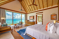Die Water Pool Villa with Slide thront über der Lagune und bietet einen privaten Pool, direkten Meerzugang sowie eine Wasserrutsche für noch mehr Vergnügen.