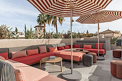 Die Nobis Rooftop Bar bietet Ruhe abseits Palmas Trubel, mit bequemen Sofas und Barhockern aus hochwertigen Materialien.