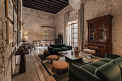 Die Courtyard Suite ist ein besonderes Highlight des historischen Palastes. Umgeben von originalen Sandsteinmauern und historischen Decken gehört sie zu den authentischsten Räumen des Hauses. Große Fenster lassen viel Tageslicht herein und eröffnen einen tollen Blick auf den ruhigen Innenhof im Erdgeschoss.