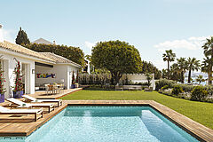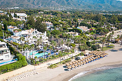 An der goldenen Meile von Marbella gelegen vereint dieses zauberhafte Hotel alle Reize der Gegend in sich. Nicht umsonst wurde es deshalb nach einem großartigen Vorbild aus der südspanischen Stadt Mérida benannt: die Punte Romano, die längste Brücke aus der Antike, die noch erhalten ist. Ein kleines Abbild davon ziert den üppigen Tropengarten des Puente Romano Beach Resort, das im Stil eines andalusischen Dorfes gebaut wurde. Die Zimmer und Suiten bestechen durch ihren individuellen Charme. Durch die großflächigen Fenster flutet das sanfte südliche Licht in die hellen Räume, während draußen vor den weitläufigen privaten Terrassen die üppige Botanik Lebensfreude pur feiert. Das Resort liegt direkt am Strand, bietet aber auch drei Pools, ein modernes Fitness-Studio und einen weltbekannten Tennisclub – ein echtes Paradies für alle Sportler. Als Golfer werden Sie das Marbella Club Golf Resort lieben, zu dem Sie als Gäste exklusiven Zugang erhalten, und mit El Higueral erwartet Sie einer der schönsten Golfplätze der Küste. Ebenso abwechslungsreich wie die Aktivitäten präsentiert sich auch die Kulinarik, die hier in diversen Restaurants zelebriert wird: von eleganter Mittelmeerküche bis hin zu raffinierten andalusischen Rezepten! Dieses exquisite Beach Resort ist einfach Ihre Brücke ins Paradies.
