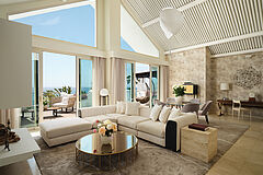 The Beach Penthouse (ca. 315 qm) stellt eine Kombination aus der Mediterranean Suite und Imperial Suite dar. Genießen Sie ein Höchstmaß an Luxus und Komfort in den wunderschönen Zimmern und im großen Außenbereich.
