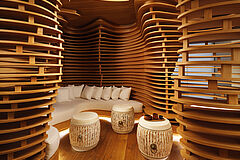 Die Al-Andalus Suite (ca. 105 qm) verfügt zudem über zwei ausladende Terrassen. Das Design der Grand Suiten zeichnet sich durch die helle Einrichtung und die offene Architektur der Interieurs aus.
