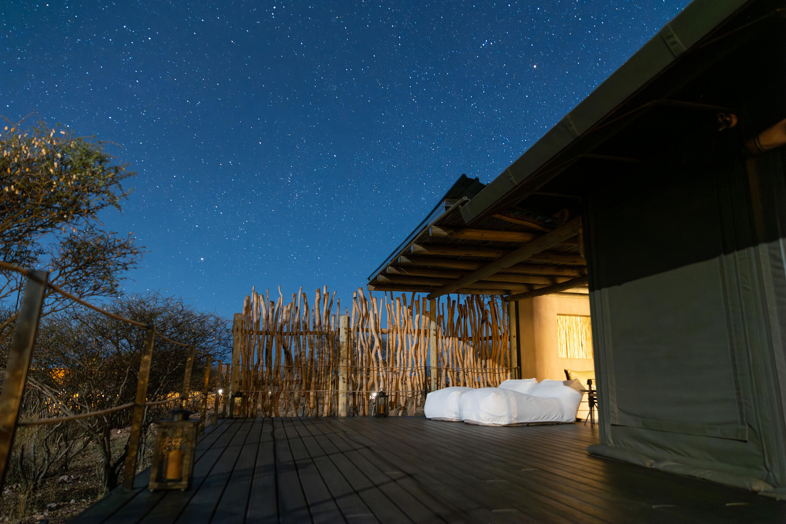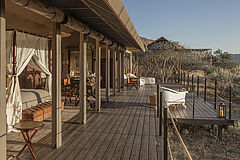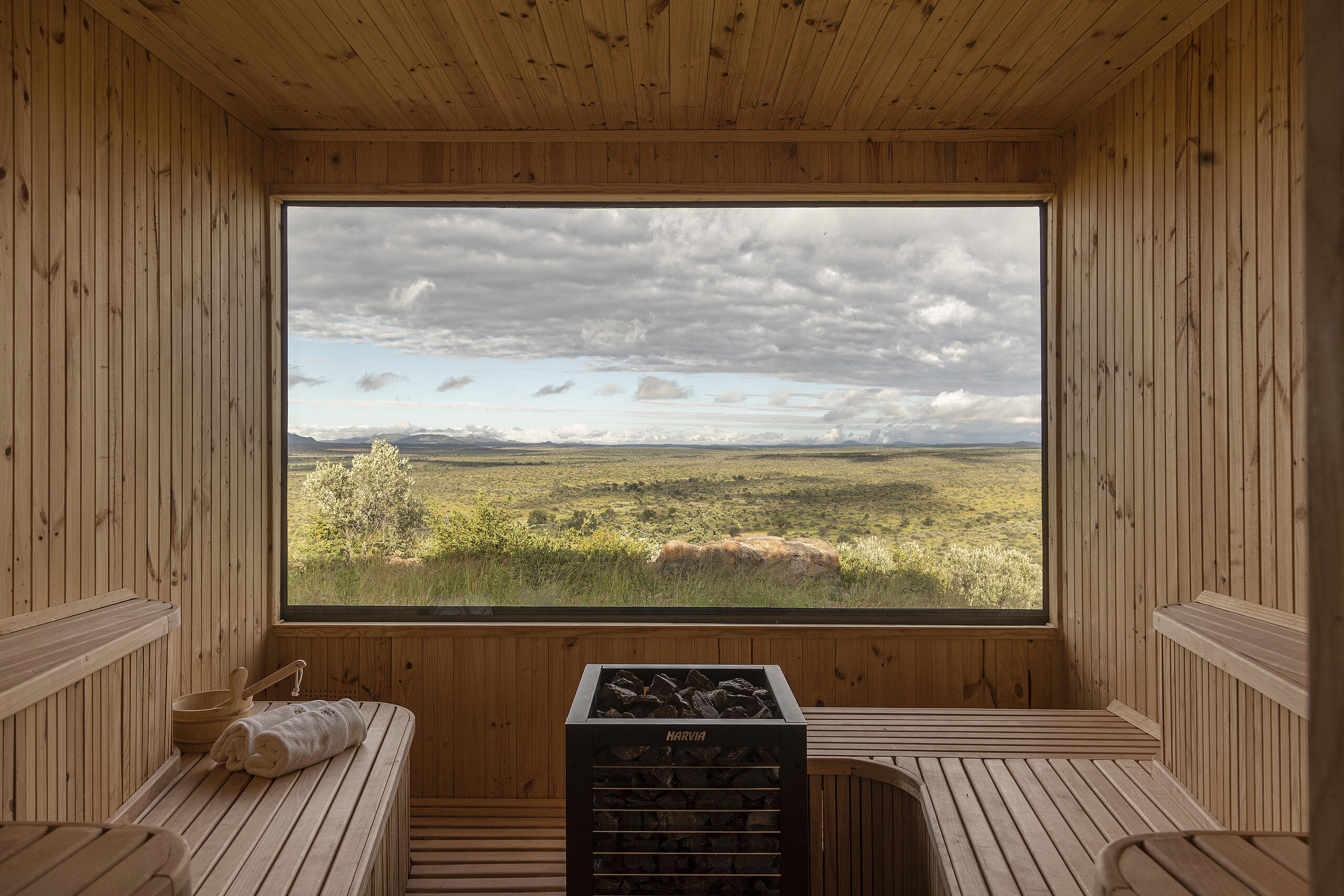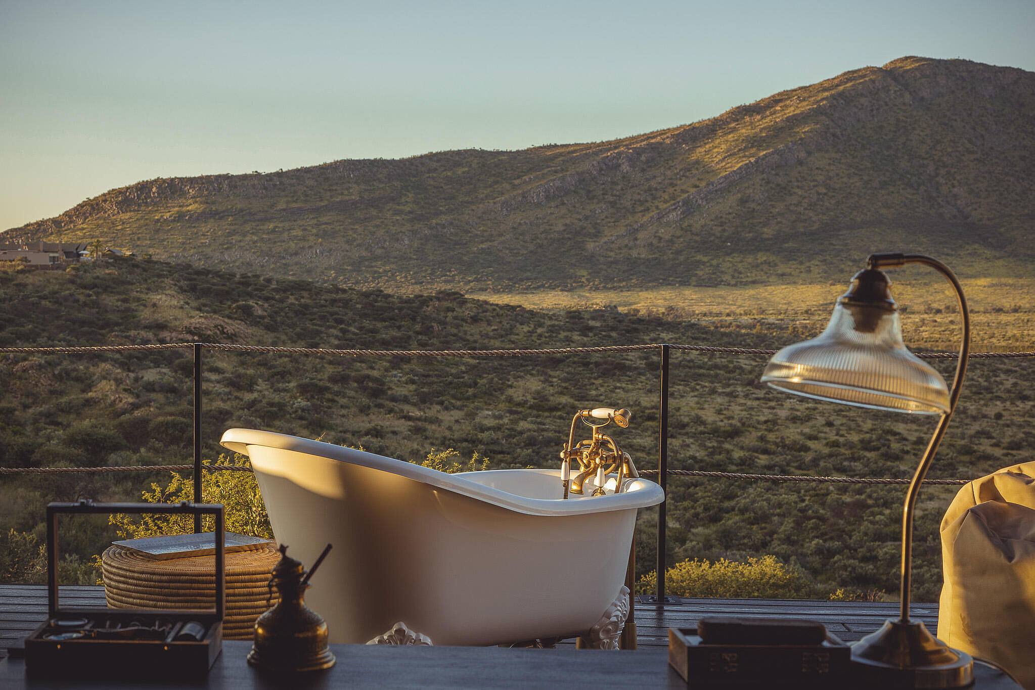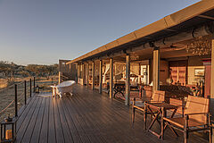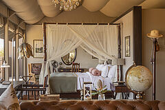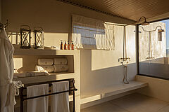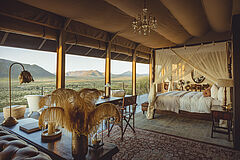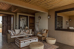 Die Gmundner Double Suite verbindet großzügige Wohnbereiche mit einer offenen Architektur, die den Blick weit über die Savannenlandschaft schweifen lässt. Innen- und Außenbäder mit freistehender Badewanne und Außendusche schaffen ein intensives Naturerlebnis in stilvoller Privatsphäre.