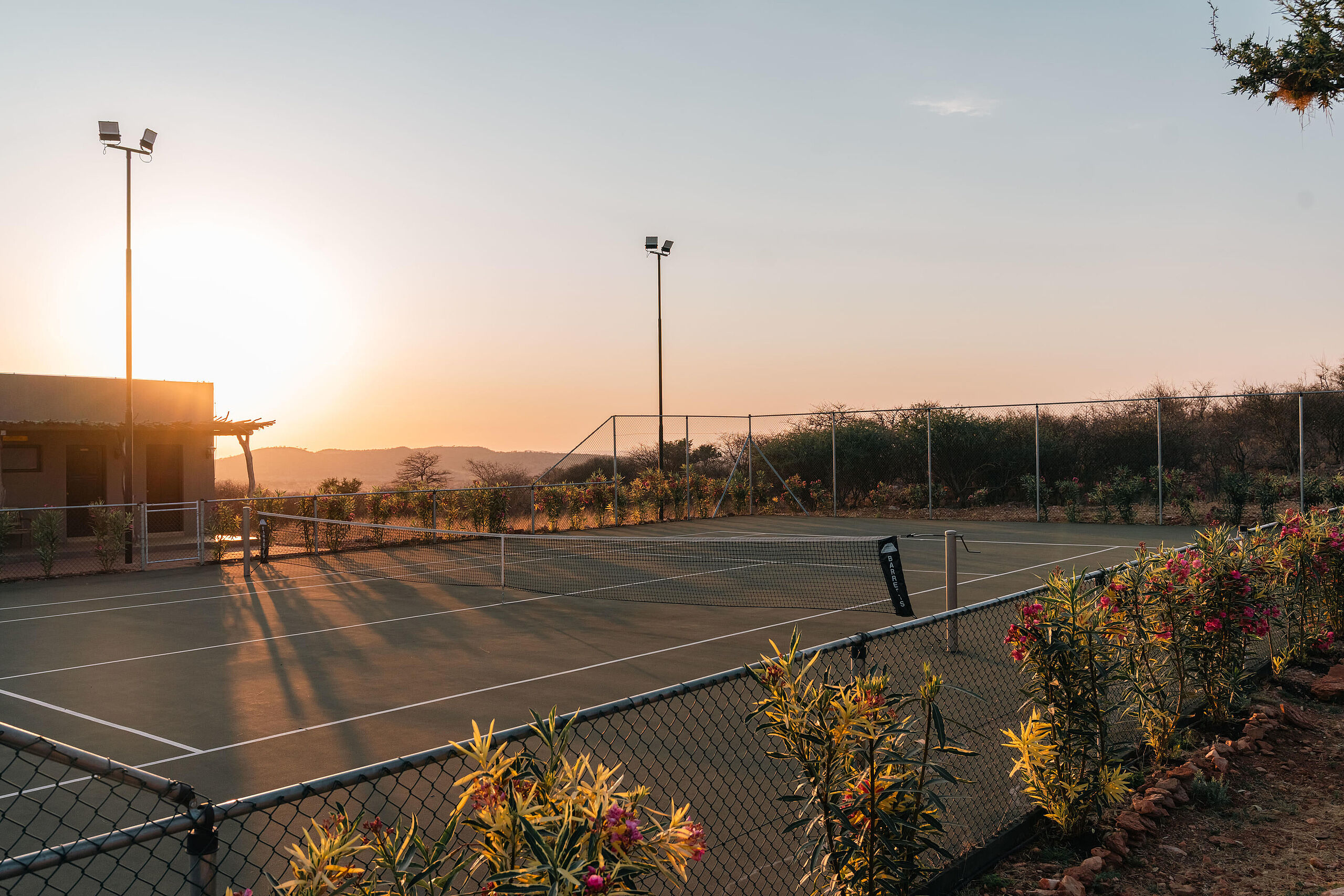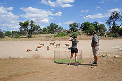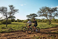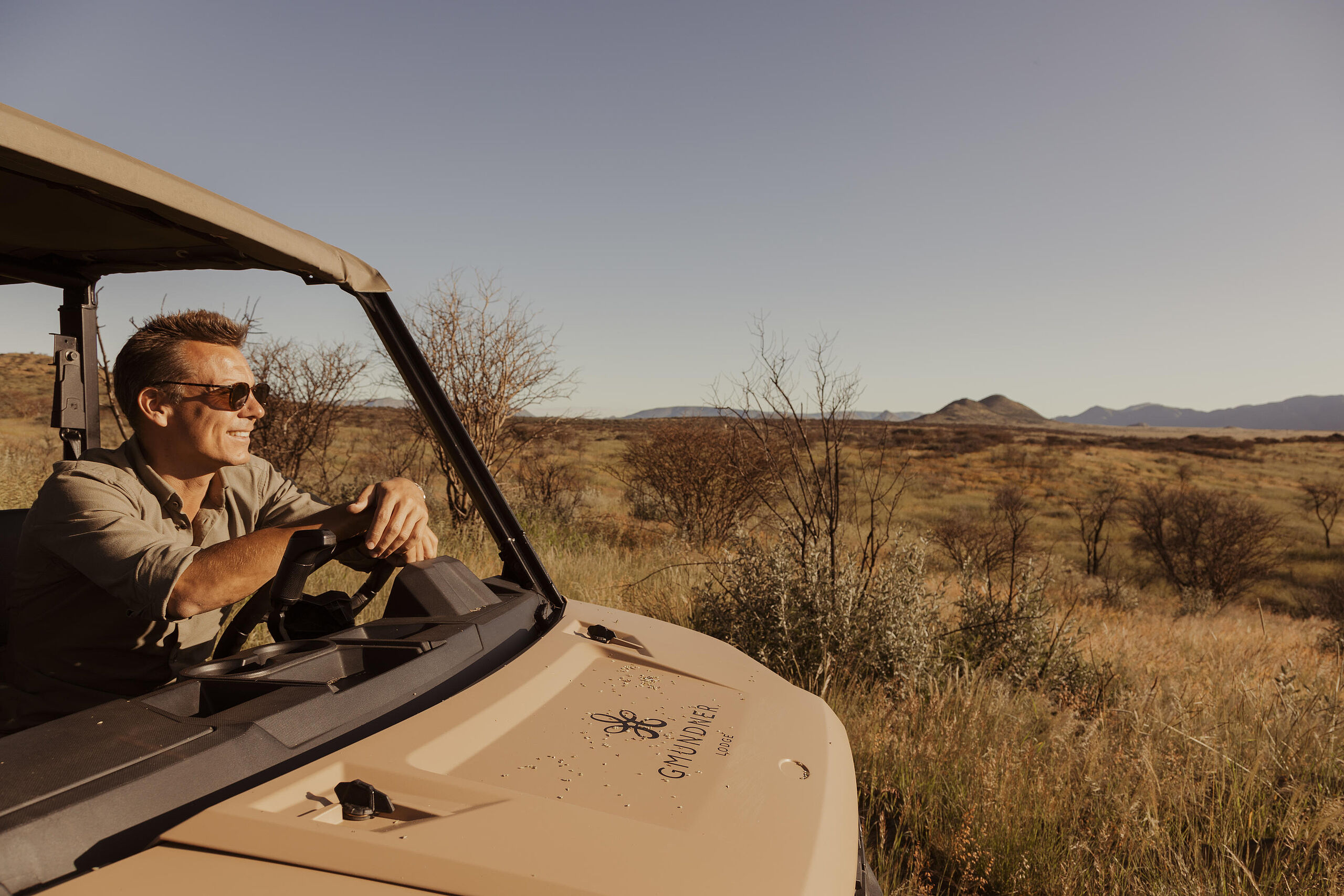 Geführte Game Drives führen durch die weite Landschaft der Savanne und ermöglichen intensive Tierbeobachtungen sowie eindrucksvolle Naturerlebnisse im wechselnden Licht des Tages. Besonders stimmungsvoll sind die Sundowner-Ausfahrten. Aktive Gäste erkunden das Gelände beim E-Biking oder hoch zu Pferd, ergänzt durch sportliche Angebote wie Tennis, Bogenschießen oder Tontaubenschießen. Die Gmundner Lodge eröffnet mit Helikopterflügen eine außergewöhnliche Perspektive auf Namibia: Aus der Luft entfaltet sich die Weite der Kalahari mit ihren endlosen Linien, dramatischen Lichtstimmungen und der stillen Schönheit des privaten Reservats. Auch Golferlebnisse sind Teil des Angebots und führen auf nahegelegene, sorgfältig ausgewählte Plätze in der Umgebung.
