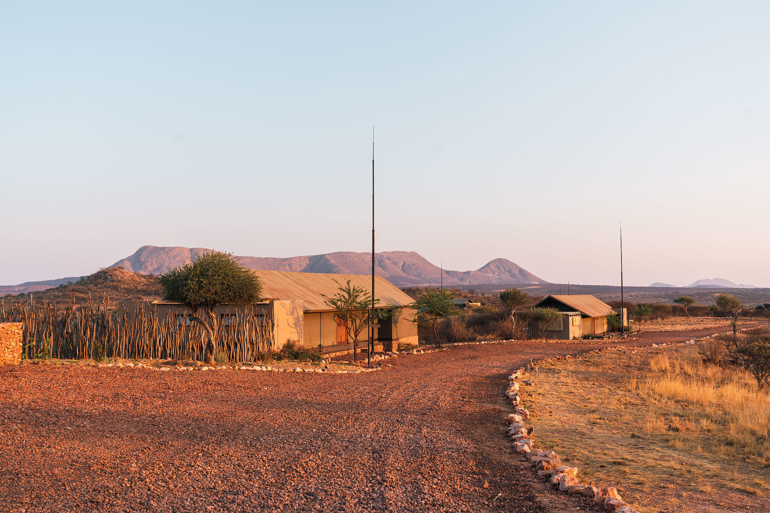 Die Gmundner Lodge liegt südöstlich von Windhoek inmitten eines weitläufigen, privaten Naturreservats, eingebettet zwischen dem Khomas-Hochland und der Kalahari-Wüste. Die Anreise erfolgt komfortabel über den internationalen Flughafen Windhoek, der nur etwa 30 bis 45 Fahrminuten entfernt liegt. Von dort führt eine gut ausgebaute Strecke direkt in die Abgeschiedenheit des Reservats.