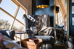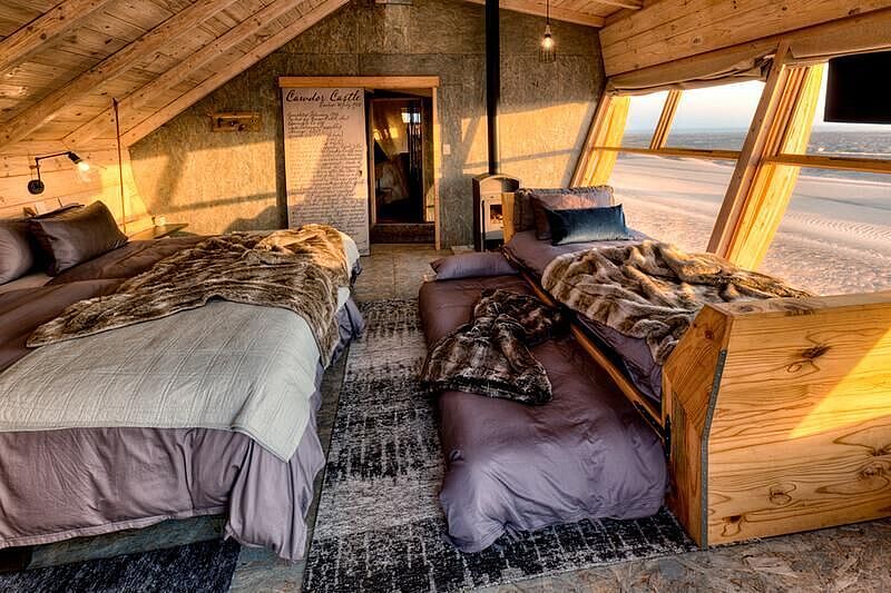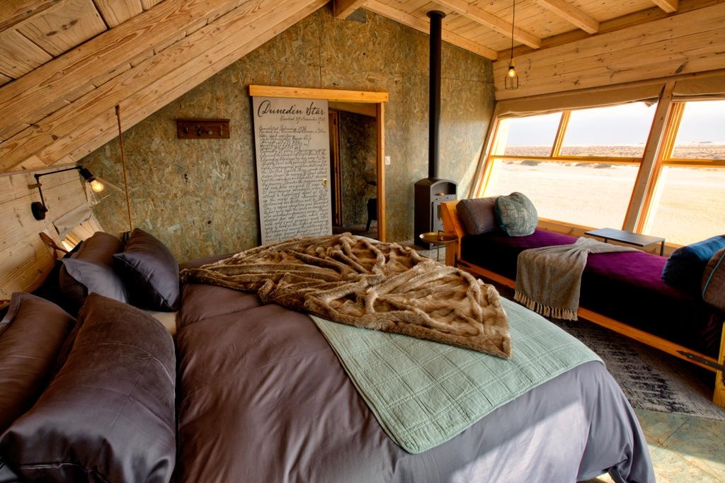 Die acht Zimmer und zwei Familieneinheiten der Shipwreck Lodge sind als einzigartige Rückzugsorte konzipiert und greifen die dramatische Ästhetik der Skelettküste auf. Jede der Kabinen ist von den legendären Schiffswracks der Küste inspiriert und wirkt wie ein gestrandetes Bauwerk. Im Inneren erwartet eine warme, überraschend behagliche Atmosphäre aus Holz, handgefertigten Details und maritim anmutenden Akzenten. Große Fenster öffnen den Blick auf Sand, Nebel und Atlantik, während ein Kamin in kühlen Nächten für wohltuende Wärme sorgt. Die Ausstattung verbindet rustikale Authentizität mit Komfort: gemütliche Schlafbereiche und stilvolle Bäder.
