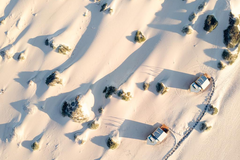 Die Shipwreck Lodge liegt tief im Norden der namibischen Skelettküste im gleichnamigen Nationalpark, eingebettet zwischen endlosen Dünen und dem rauen Atlantik. Die Anreise erfolgt per Kleinflugzeug von Windhoek zum Möwe Bay Airstrip, gefolgt von einer etwa 1,5- bis 2-stündigen Weiterfahrt im Allradfahrzeug durch die Wüstenlandschaft bis zur Lodge. Eine individuelle Abholung am Airstrip ist am Nachmittag möglich, während die Lodge selbst für Selbstfahrer nicht zugänglich ist.