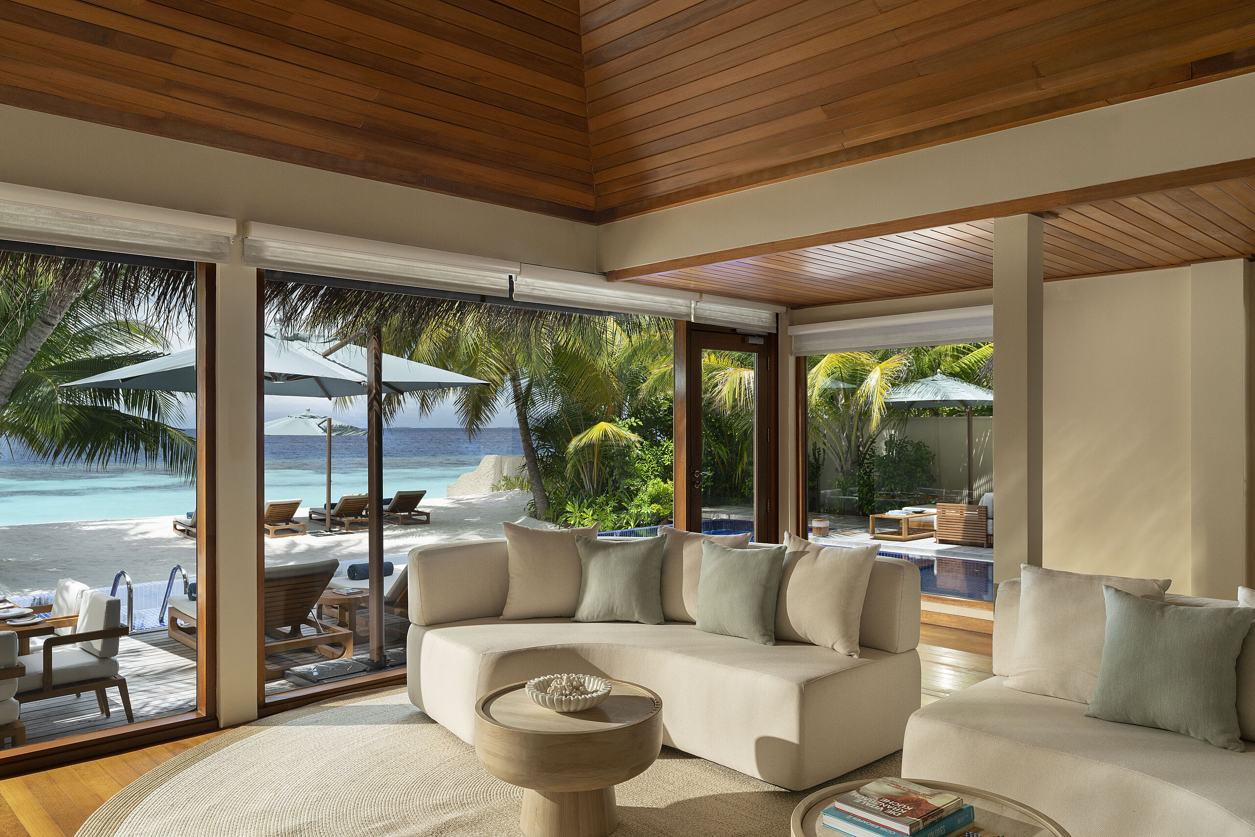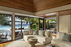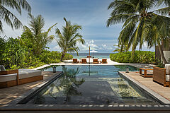 Die Bunglawos am Strand: Beach Bungalows with Pool (ca. 125 qm), Deluxe Beach Bungalows with Pool (ca. 160 qm), Two Bedroom Beach Pavilions with Pool (ca. 800 qm) und Three Bedroom Cube with Pool (ca. 463 qm), haben alle einen direkten Strandzugang.